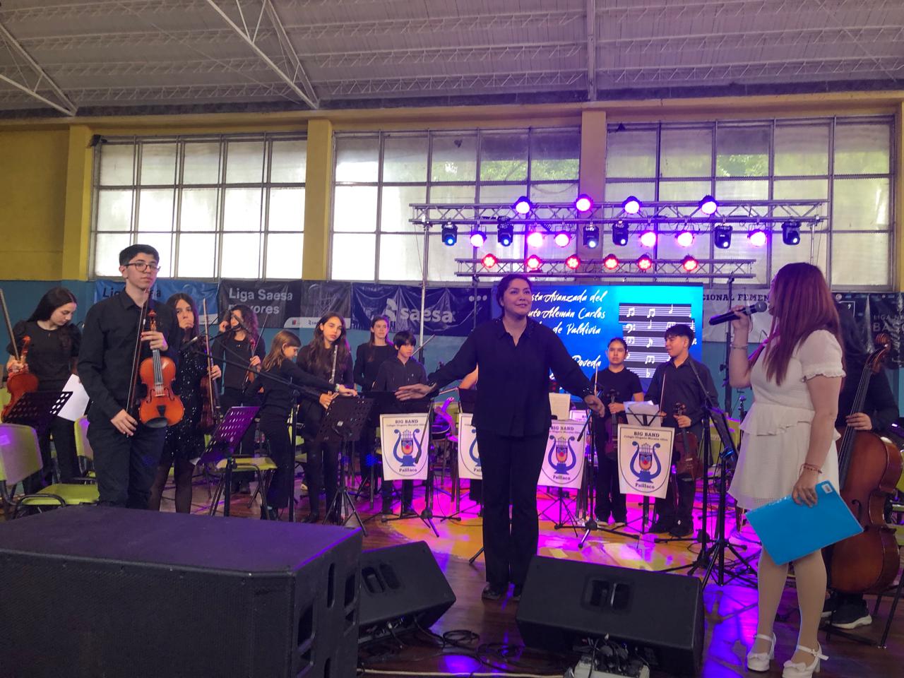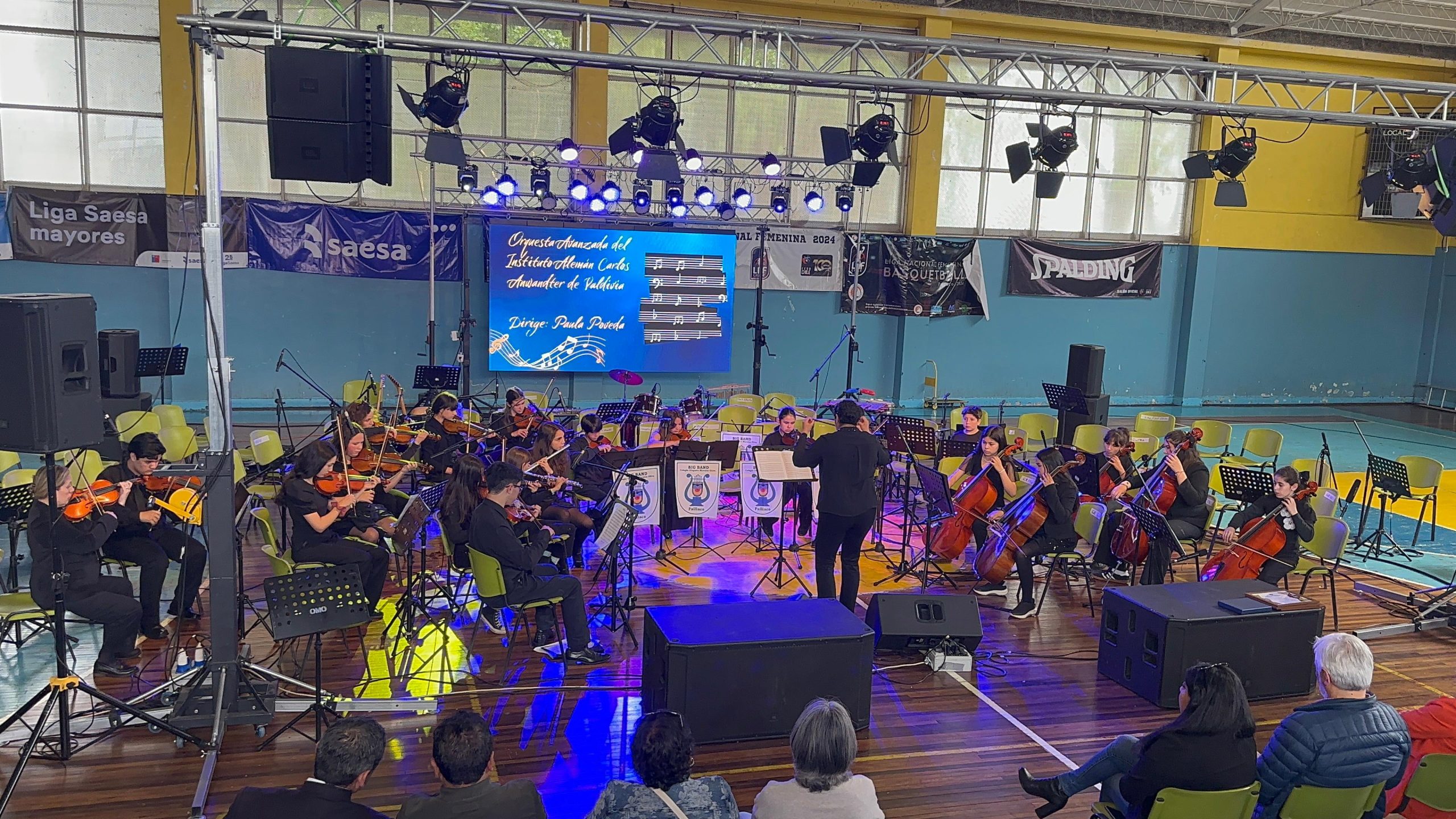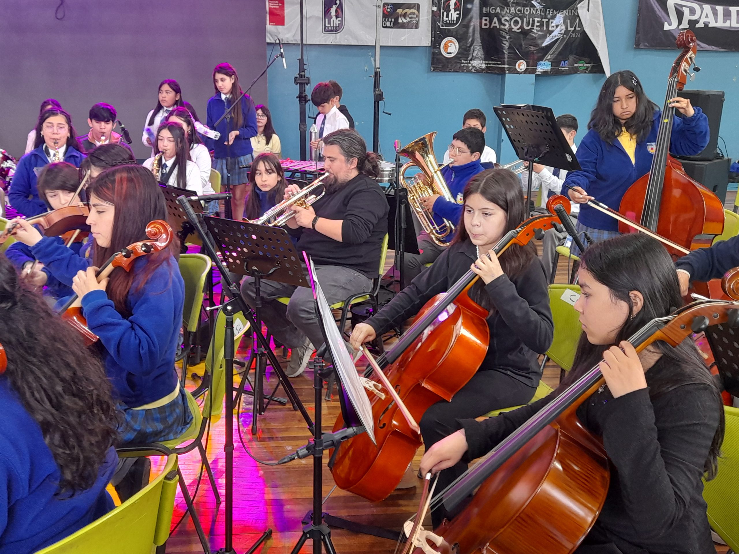 La jornada —realizada en la ciudad de Paillaco— reunió a la Orquesta de la Escuela Básica Olegario Morales Oliva, su Big Band y la Orquesta Avanzada del Instituto, brindando un espacio de aprendizaje compartido y de traspaso musical para los estudiantes. Nuestra agrupación se presentó bajo la dirección de la profesora Paula Poveda, Directora de la Orquesta Avanzada, reforzando el trabajo sostenido del área musical del Instituto.