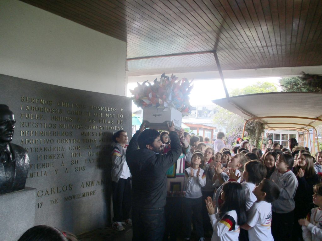 Adrián Silva, Coordinador de Extensión de la Dirección Museológica de la UACh, recibió de parte de la Directora de Primer Ciclo Básico, Verónica Martin, más de 200 remolinos, y agradeció a los niños y a sus profesores por la hermosa iniciativa que con seguridad disfrutaron muchos pequeños ayer. También los invitó a la jornada dedicada a ellos y los incentivó a conocer más y valorar el patrimonio cultural de nuestra zona.