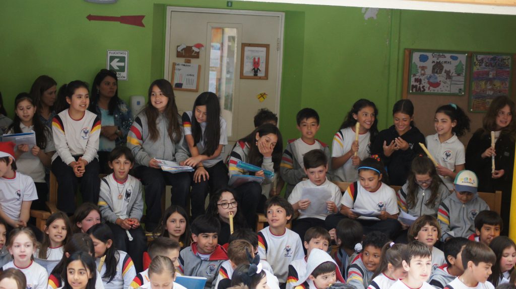 Unter der Leitung von Renate Hagedorn präsentierten die GrundschülerInnen ein wunderschönes Repertoire an Weihnachtsliedern auf Spanisch und Deutsch, das die deutsche und chilenische Kultur vereinte und den Gemeinschaftsgeist stärkte. Die fröhlichen, enthusiastischen Stimmen der Kinder schufen eine warme Atmosphäre an diesem ersten Adventsmontag an der DSV.
