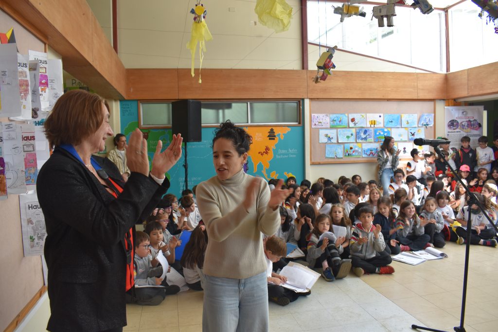 Grundschulleiterin Verónica Martin begrüßte die Schülerinnen und Schüler, die sich mit Lehrkräften und Mitschülern versammelten, um gemeinsam den ersten Advent zu feiern und über den Geist der Weihnacht zu sprechen.