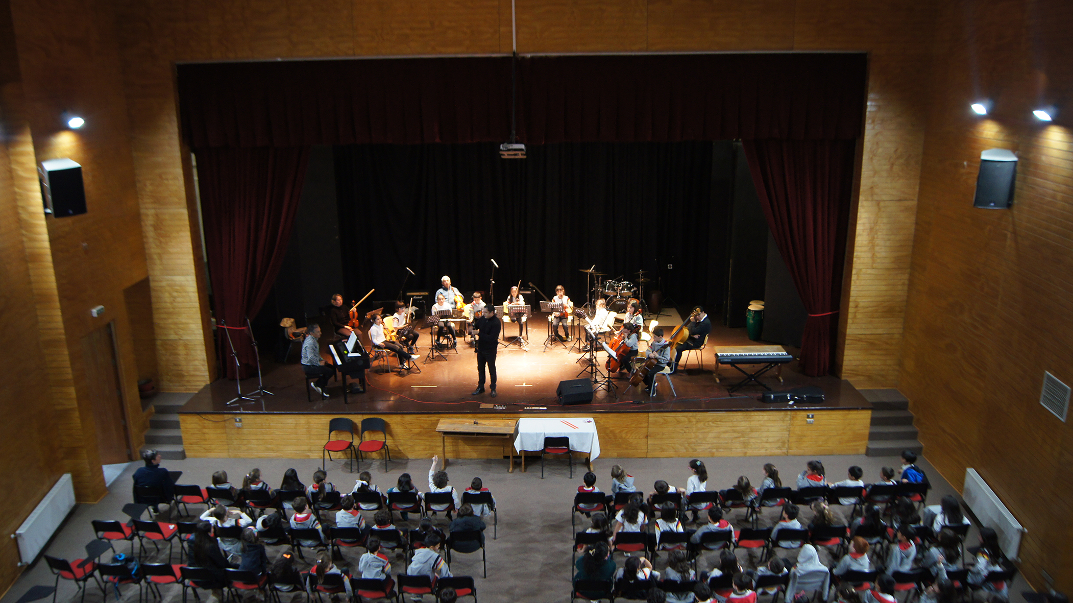 Die drei ersten Klassen versammelten sich gestern Vormittag im Auditorium, um verschiedene Musikinstrumente zu entdecken, die an unserer Schule unterrichtet werden und von Musiklehrern präsentiert wurden. Einige Mitschüler, die ein Instrument lernen, beteiligten sich ebenfalls an der Präsentation.