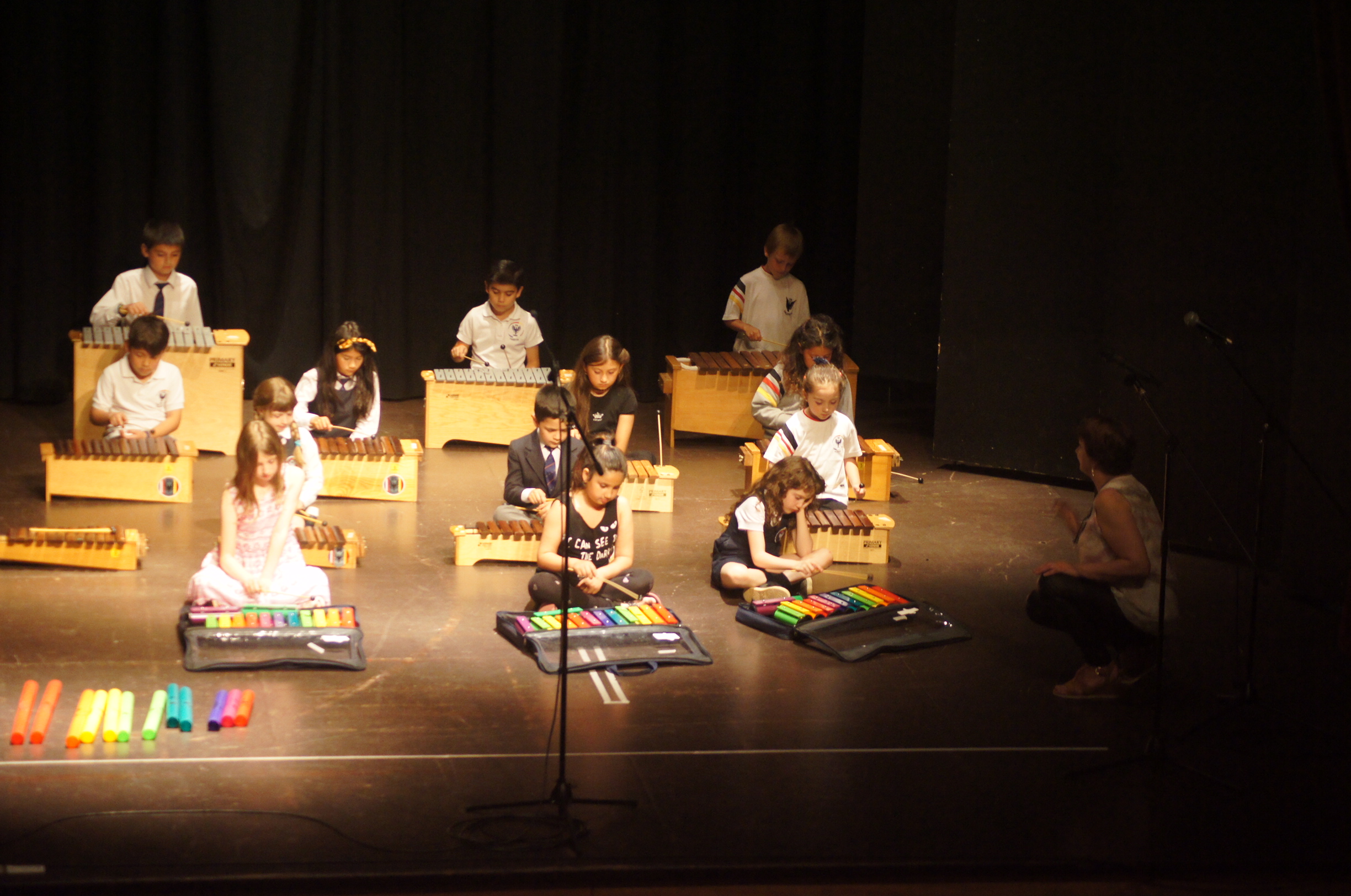 Una muy entretenida presentación realizaron anoche los alumnos que pertenecen al Taller Instrumental, al Coro Infantil y al Taller “Bailemos todos”. La profesora Renate Hagedorn, a cargo de los talleres, presentó en primer lugar al Taller Instrumental y explicó al público presente el tipo de instrumentos que los alumnos practican en él y la dinámica de trabajo. Los alumnos interpretaron diferentes temas, tanto en instrumentos melódicos, como en percusión rítmica con el cuerpo y otros implementos, y finalizaron con una batucada.