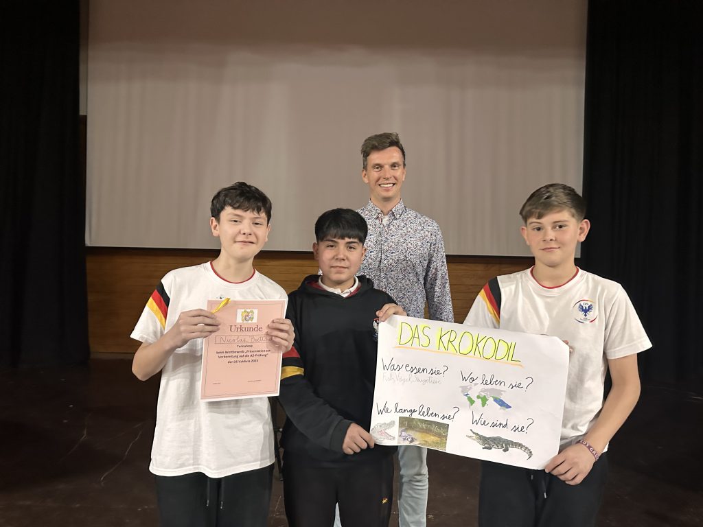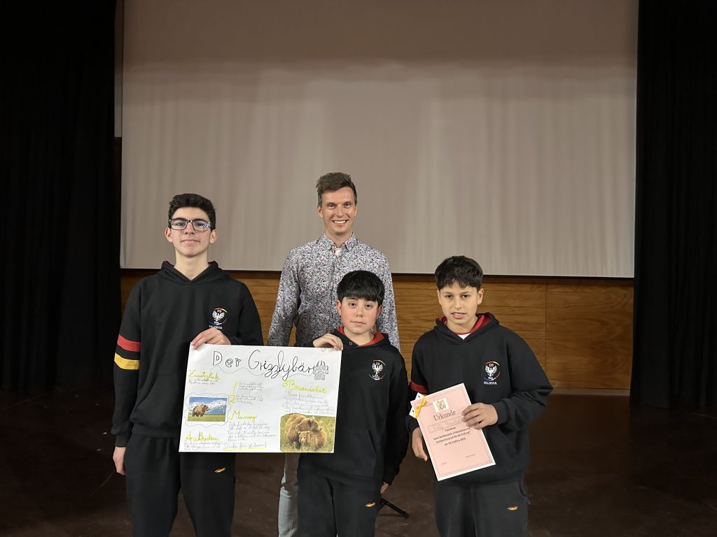 Los expositores abordaron el tema de la naturaleza con claridad, cohesión y vocabulario pertinente, alcanzando un nivel lingüístico acorde a las exigencias del nivel A2. El jurado, integrado por los profesores del Departamento de Alemán Catalina Mosquera, Jessica Wütz y Marius Bachmann, destacó el trabajo bien estructurado, la seguridad al presentar y la motivación por aprender demostrada por los alumnos.