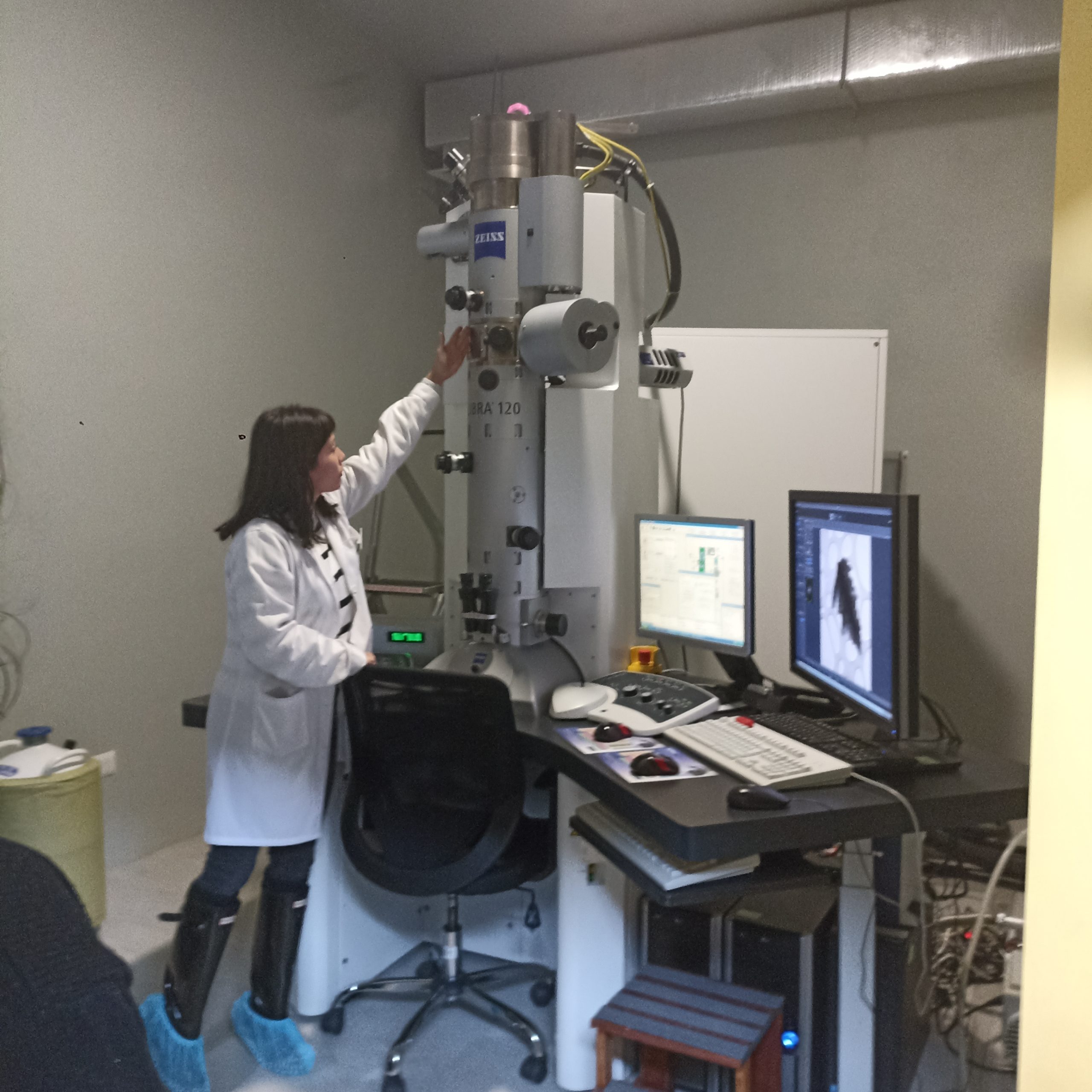 Posteriormente, el grupo se trasladó a la Unidad de Microscopía Electrónica (UME), donde pudieron observar en funcionamiento equipos de alta complejidad como el microscopio electrónico de transmisión (TEM Libra) y los microscopios de barrido (FESEM Auriga y PVSEM Evo). Además, conocieron distintos tipos de muestras y análisis realizados con esta tecnología de vanguardia.