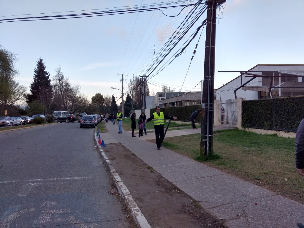 Los voluntarios en la recepción de los menores realizan esta etapa, mientras los apoderados al volante vuelven a la circulación con sus vehículos, acortando el tiempo de detención frente al colegio y permitiendo así mayor fluidez en el tráfico.
