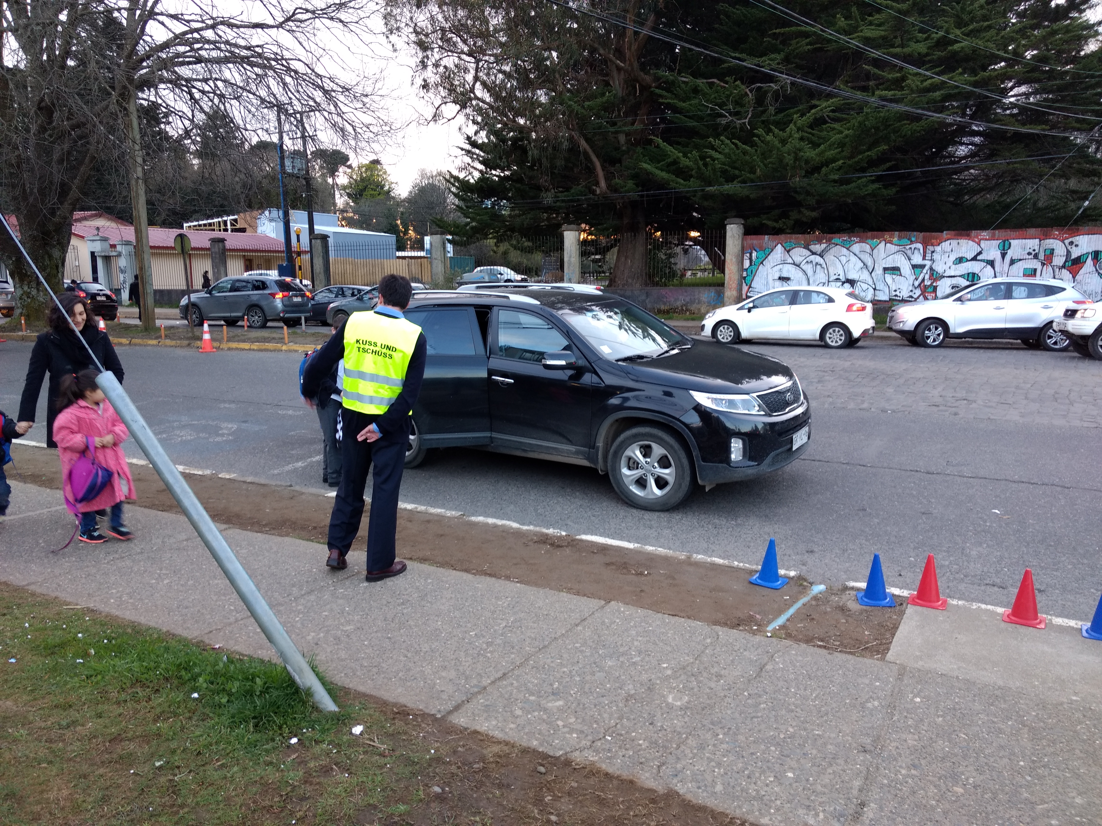 Los voluntarios en la recepción de los menores realizan esta etapa, mientras los apoderados al volante vuelven a la circulación con sus vehículos, acortando el tiempo de detención frente al colegio y permitiendo así mayor fluidez en el tráfico.