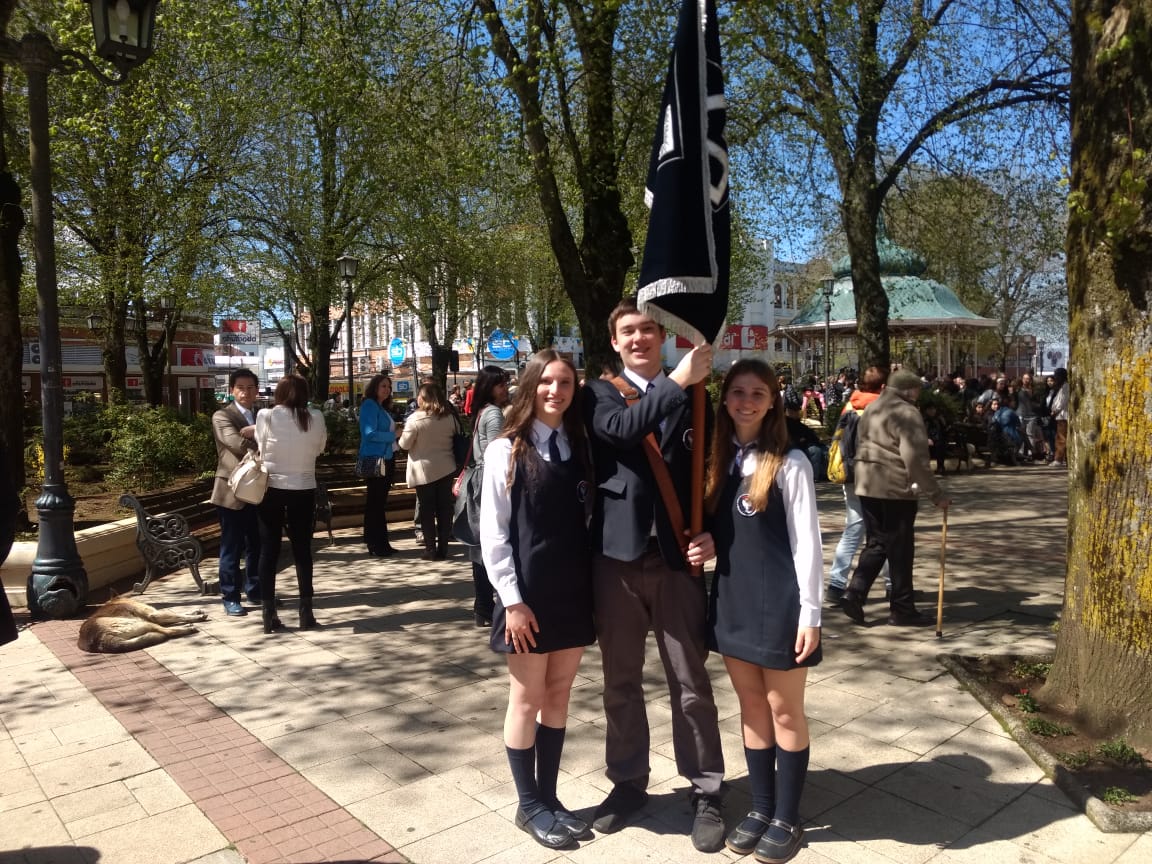 Más de 800 exalumnos se reunieron en la Plaza de la República, acompañados de la Banda Instrumental de la Guarnición Militar de Valdivia, para marchar pasado el mediodía hacia el Instituto, guiados por los alumnos abanderados Christian Shinya, Petra Bachmann y Javiera Simon, en el marco de las celebraciones del Aniversario 160 de nuestro colegio. Una vez en el establecimiento, se entonó el Himno Nacional, con el acompañamiento de los 14 músicos de la Banda, para luego hacer ingreso a los gimnasios, donde se realizó el almuerzo.