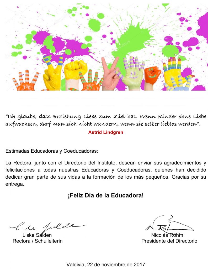 22.11.2017 Nuestra Rectora y el Presidente del Directorio reconocen en nombre de toda nuestra Comunidad Educativa la labor que realizan en el Kindergarten.