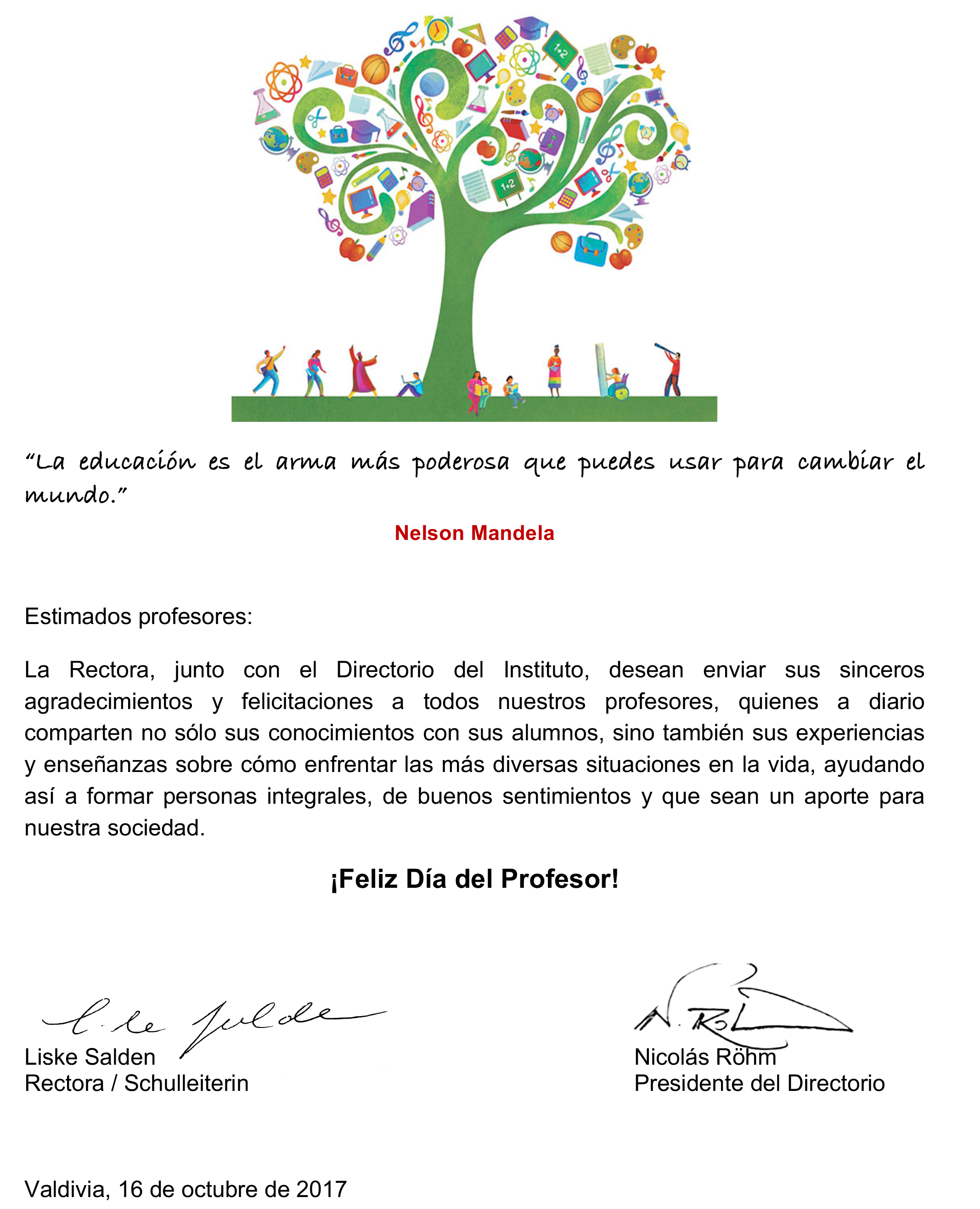 16.10.2017 A todos nuestros docentes les deseamos que hoy especialmente su importante labor sea reconocida.