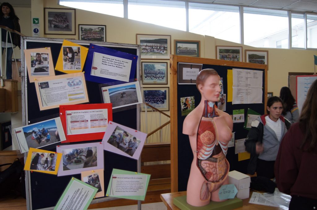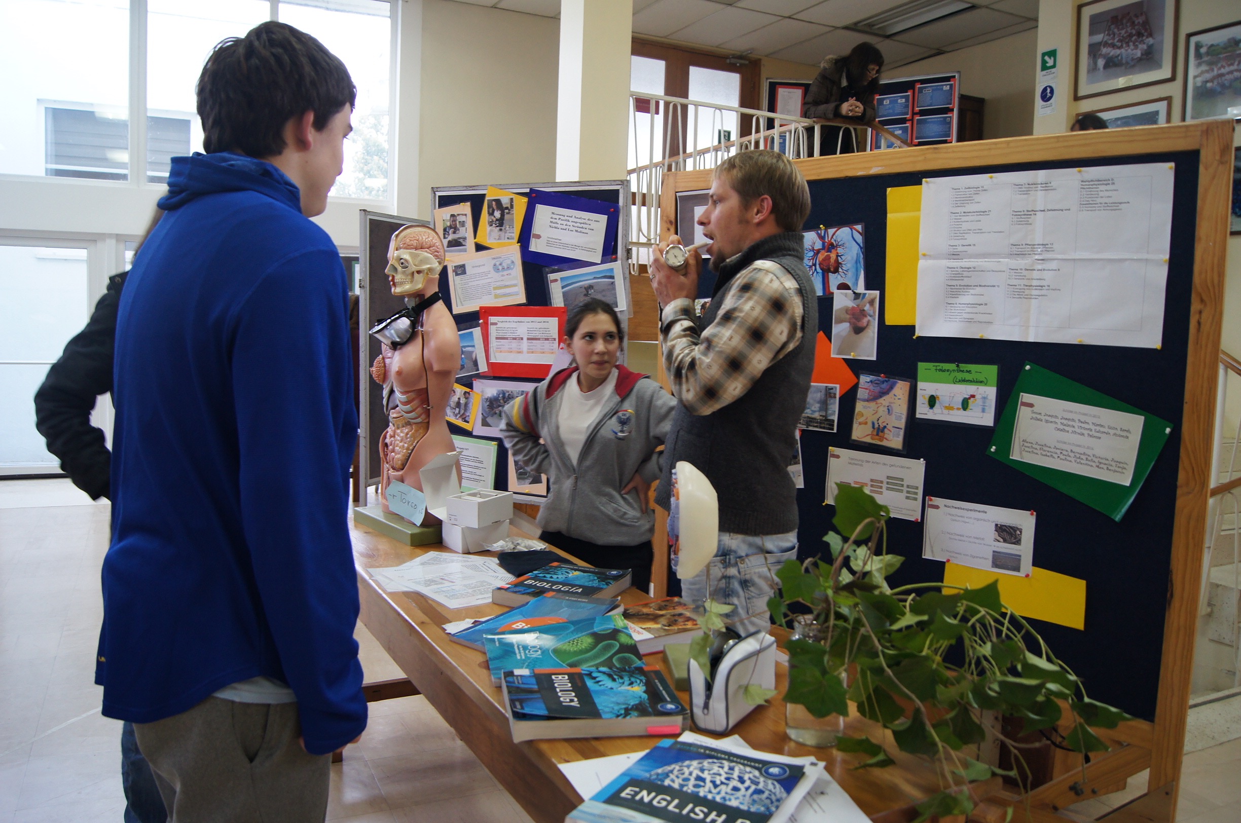 La muestra contó con la participación de profesores y alumnos de III medios del Programa del Bachillerato Internacional, junto a las coordinadoras del IB, quienes orientaron a los alumnos y apoderados de I medios que llegaron a visitar la muestra y luego se quedaron a la reunión planificada para entregarles todos los antecedentes del programa.
