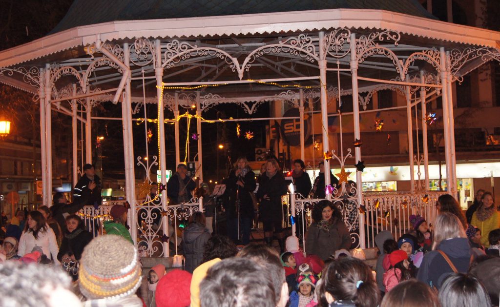 Luego de interpretar algunos temas, los niños y las educadoras dieron una vuelta a la plaza con sus faroles. Papás y mamás los esperaron frente al quiosco y luego los acompañaron en una segunda vuelta, siempre cantando los temas alusivos a San Martín, tanto en español como en alemán.