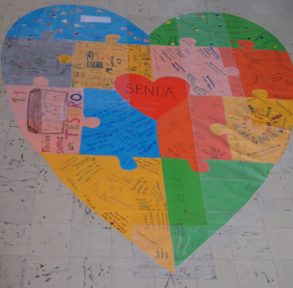 El Programa SENDA promueve el autocuidado desde una dimensión individual (cuidarme), en relación con los otros (cuidar y ser cuidado) y con la comunidad (cuidarnos). Es por esto que las profesoras buscaron cómo simbolizar este aprendizaje individual, grupal y de comunidad. Curso tuvo la responsabilidad de reflejar lo aprendido en una pieza de puzzle, para formar al final un gran corazón. El objetivo de la actividad de cada curso fue realizar una reflexión de lo aprendido y tomar conciencia de ello. Esta meta debe desarrollarse junto con el hogar y debe ser un objetivo de toda la comunidad.