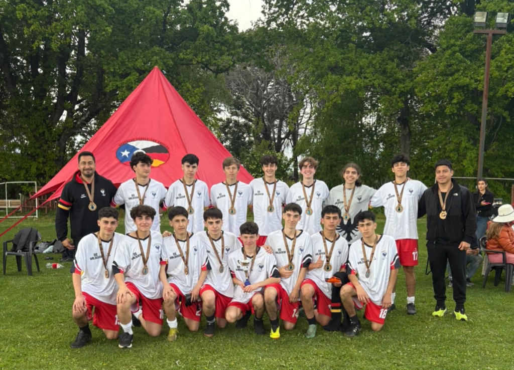El fin de semana recién pasado, el equipo de Fútbol de Enseñanza Media del Instituto compitió en un cuadrangular de fútbol 11 realizado en el Colegio Alemán de Los Ángeles, alcanzando el 3º lugar tras una exigente jornada deportiva. La participación reafirma el compromiso institucional con el deporte escolar, el trabajo en equipo y la sana competencia.