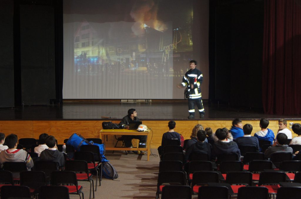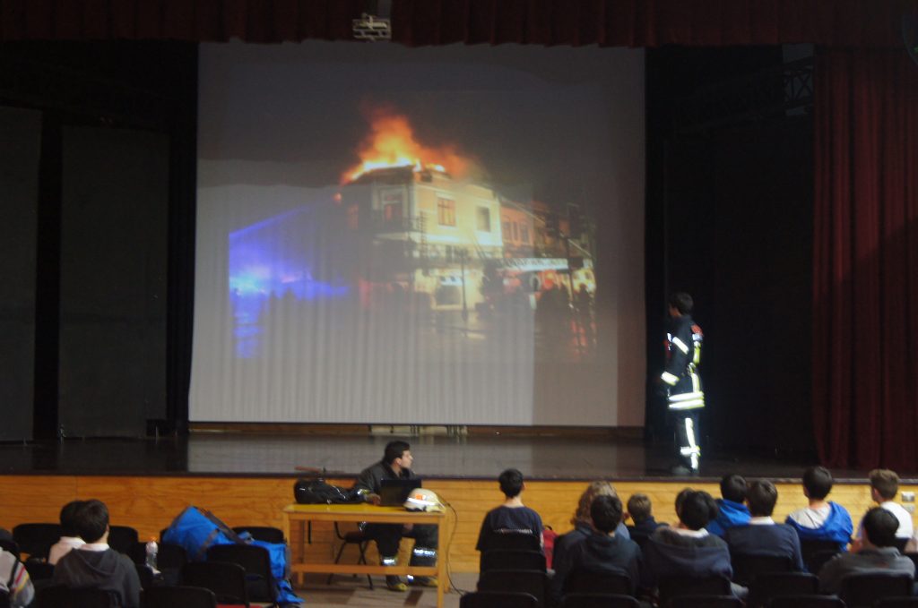El Teniente 4º de la Primera Compañía de Bomberos “Germania”, Mauricio Lira, realizó una presentación a alumnos entre 6º básico y IV medio, para incentivarlos a formar parte de los cadetes de la compañía.