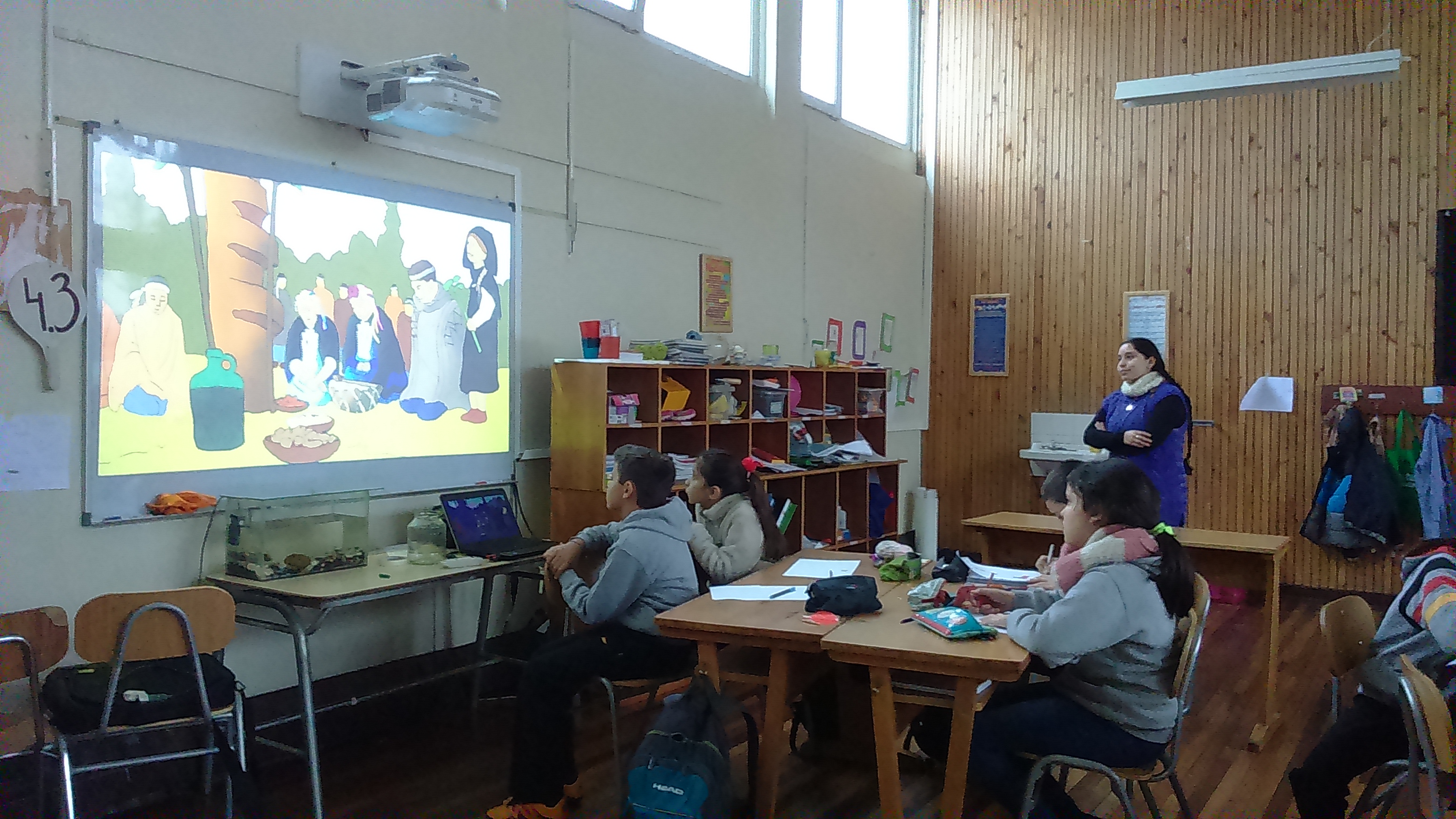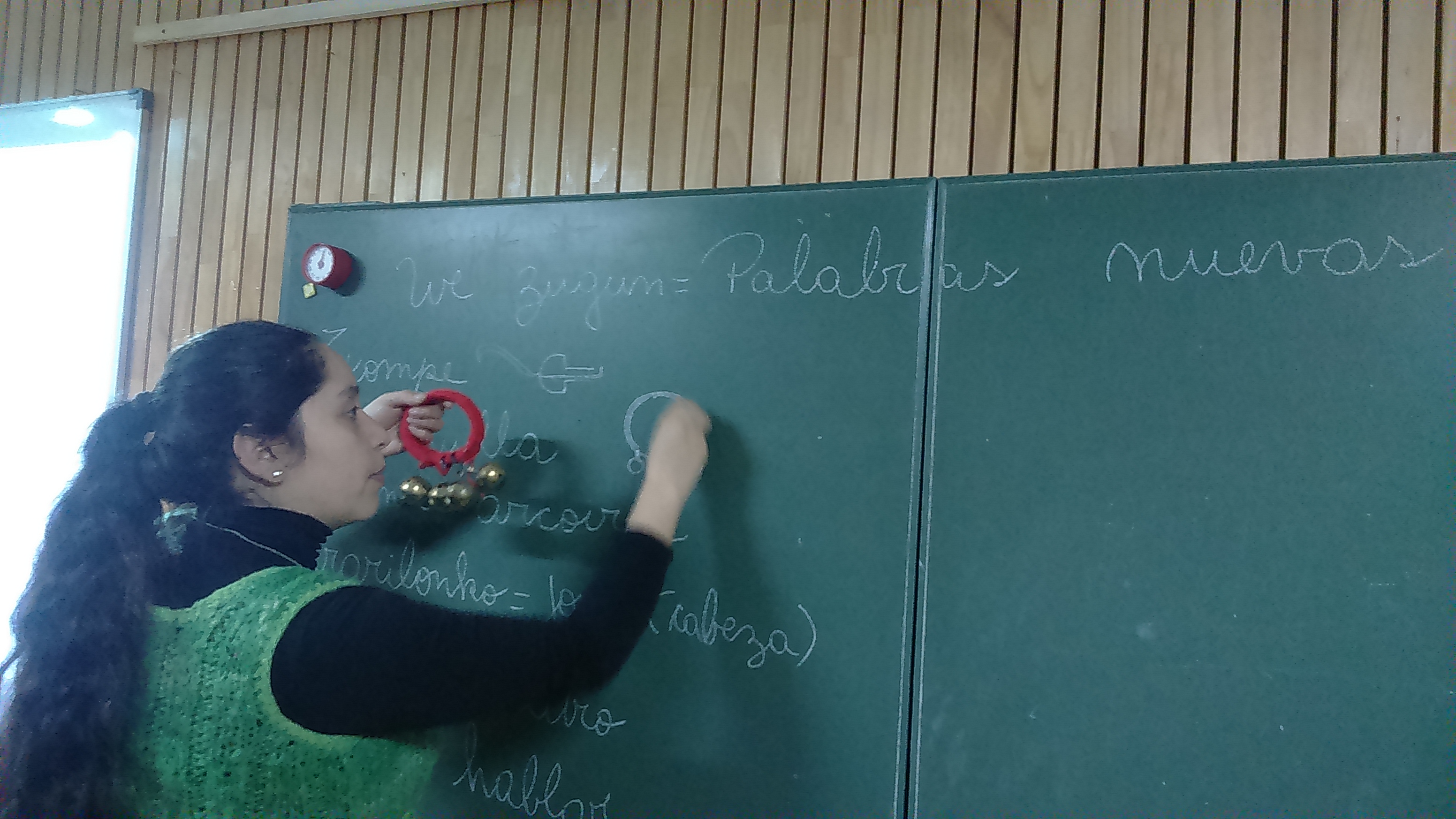 Die Mapudungun-Lehrerin Tamara Saavedra brachte den interessierten Schülern mit Hilfe von (audio)visuellem Material Sprache und Kultur der Mapuche näher. Während die Erstklässler mit ihr die Farben lernten, brachte sie Zweitklässlern Vokabeln rund um die Familie und den Drittklässlern Alltagsausdrücke bei. Den Schülern der vierten Klasse vermittelte sie die Bedeutung der We Tripantu Zeremonie.