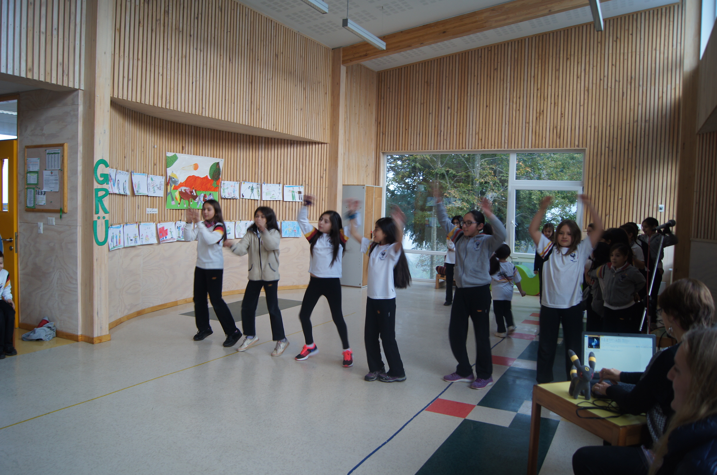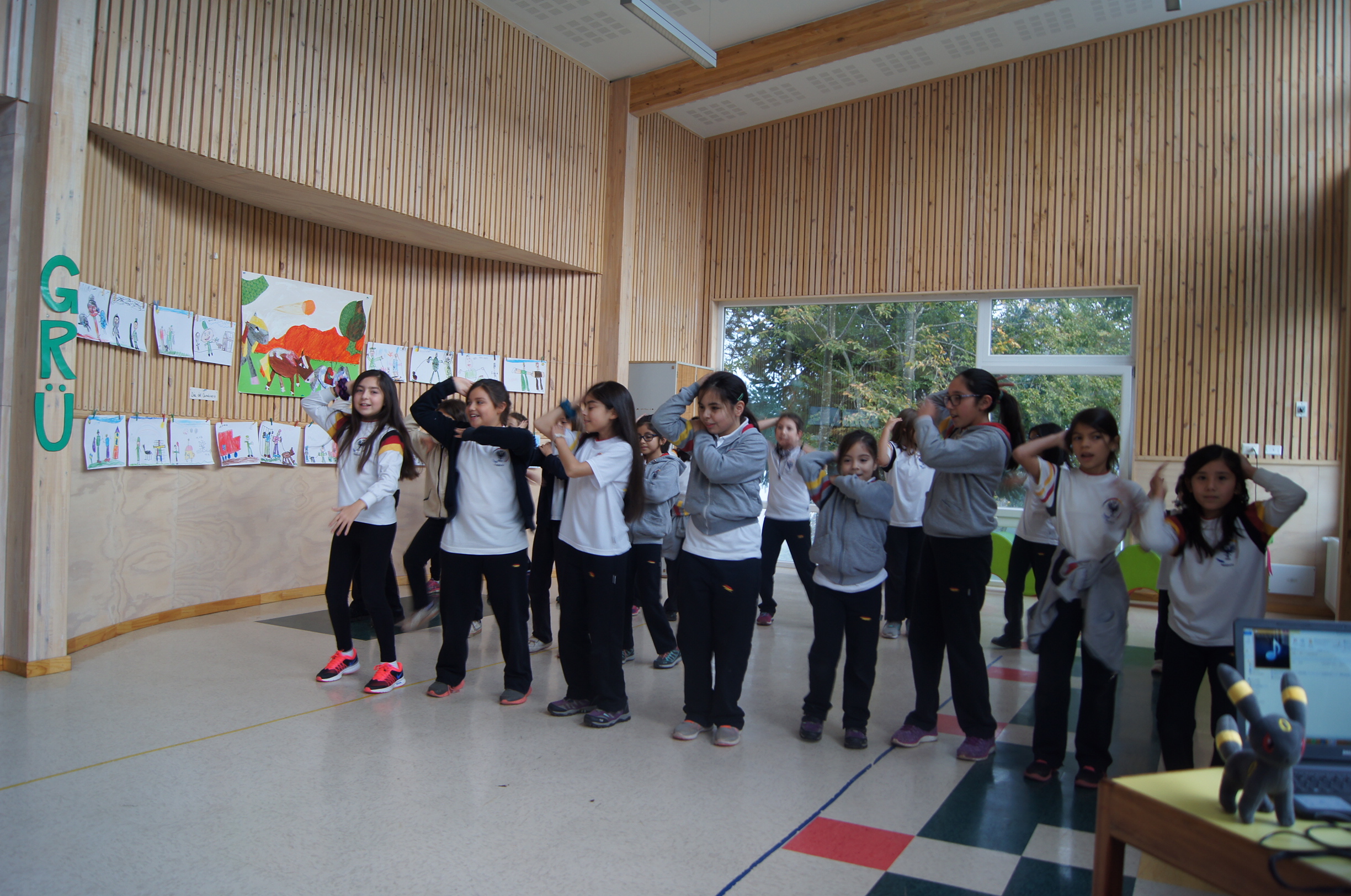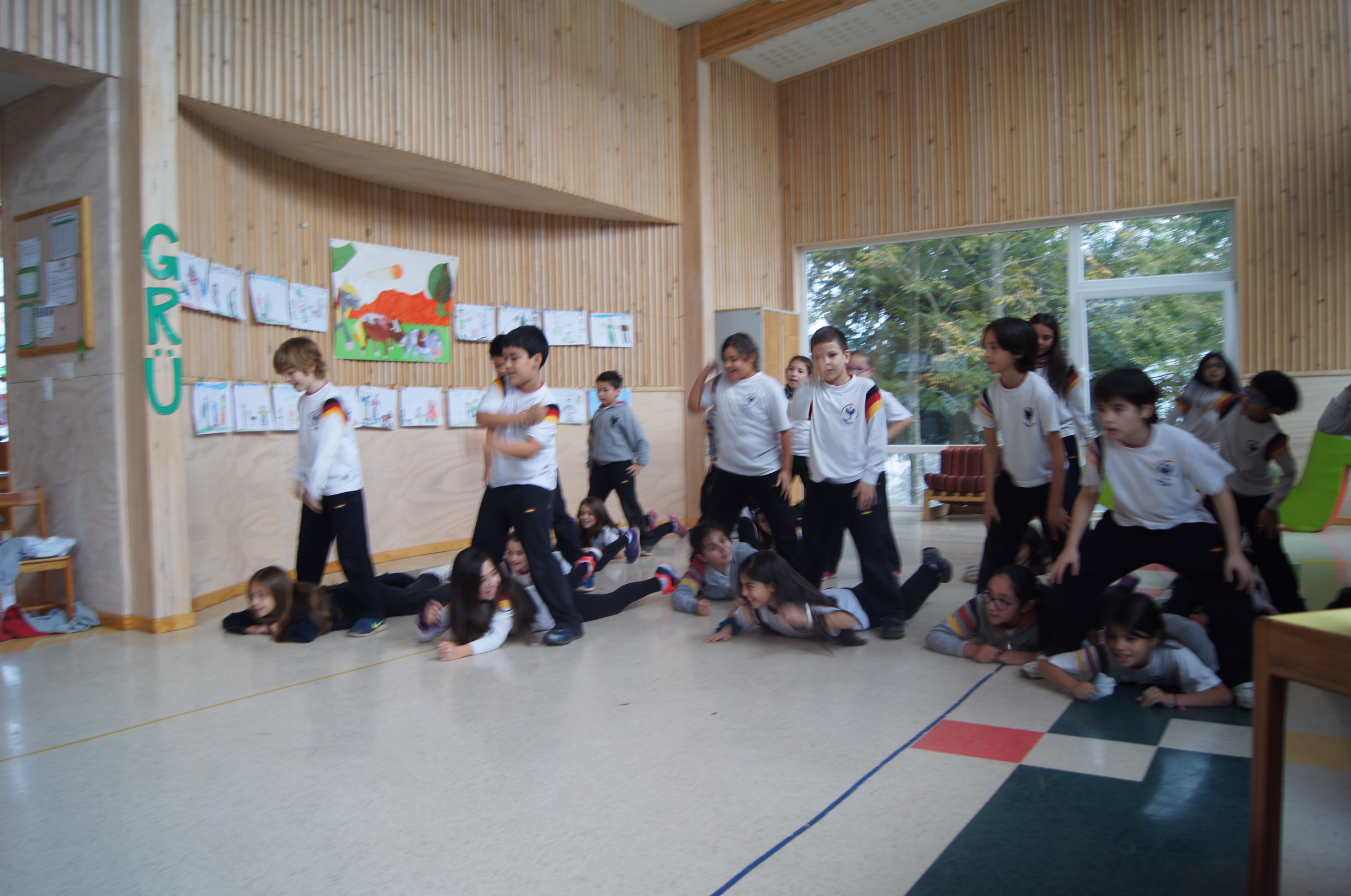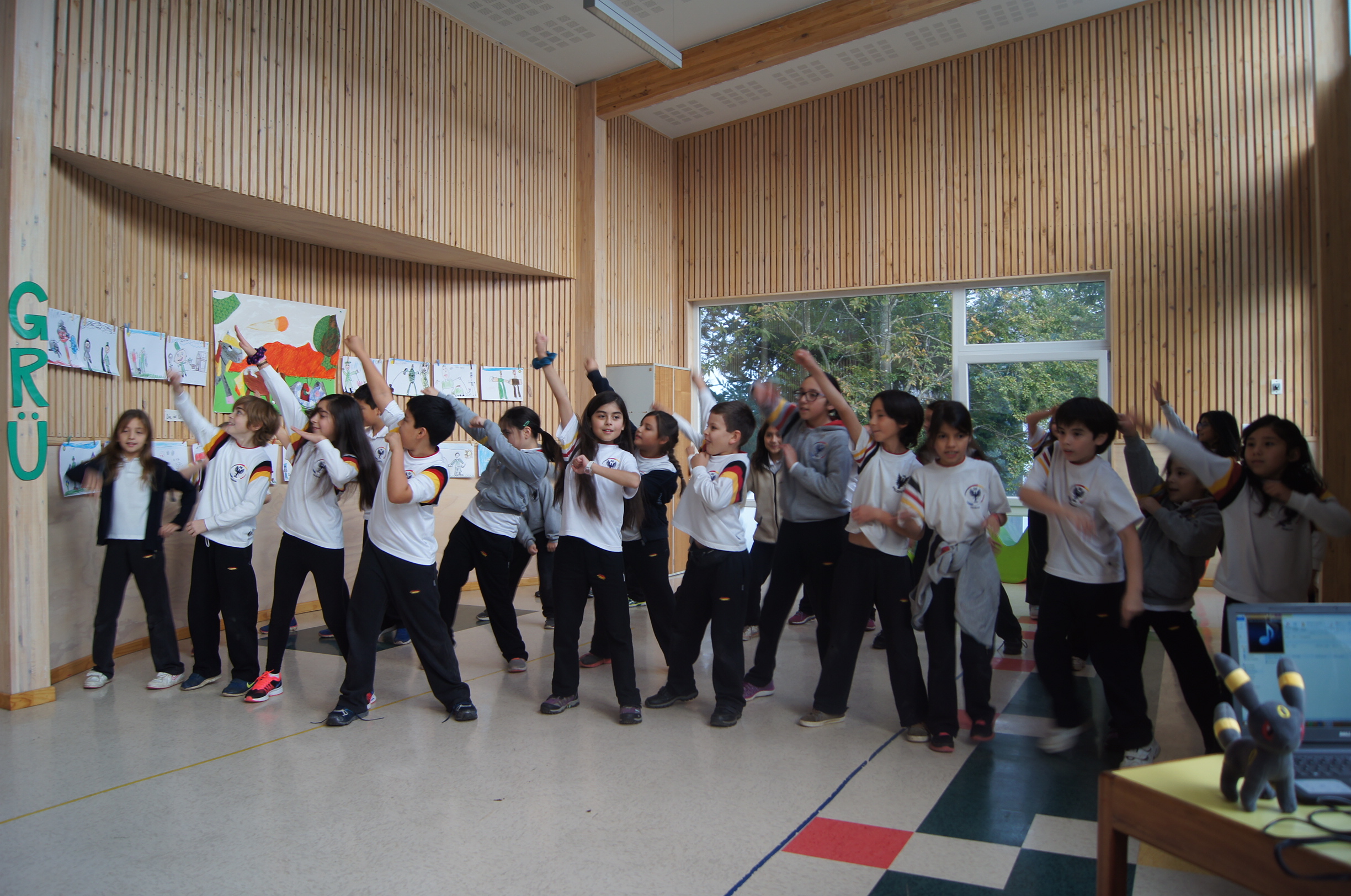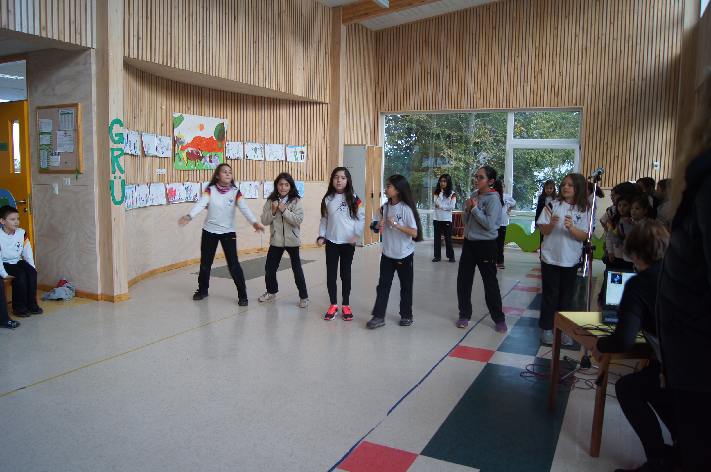 Una presentación de doce minutos realizó esta mañana para el Kindergarten el grupo “Bailemos todos”, extraprogramática dirigida por la profesora Renate Hagedorn, que reúne a alumnos de 1º a 5º básico en torno al baile.