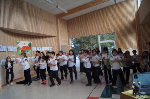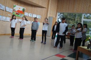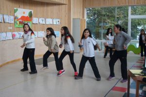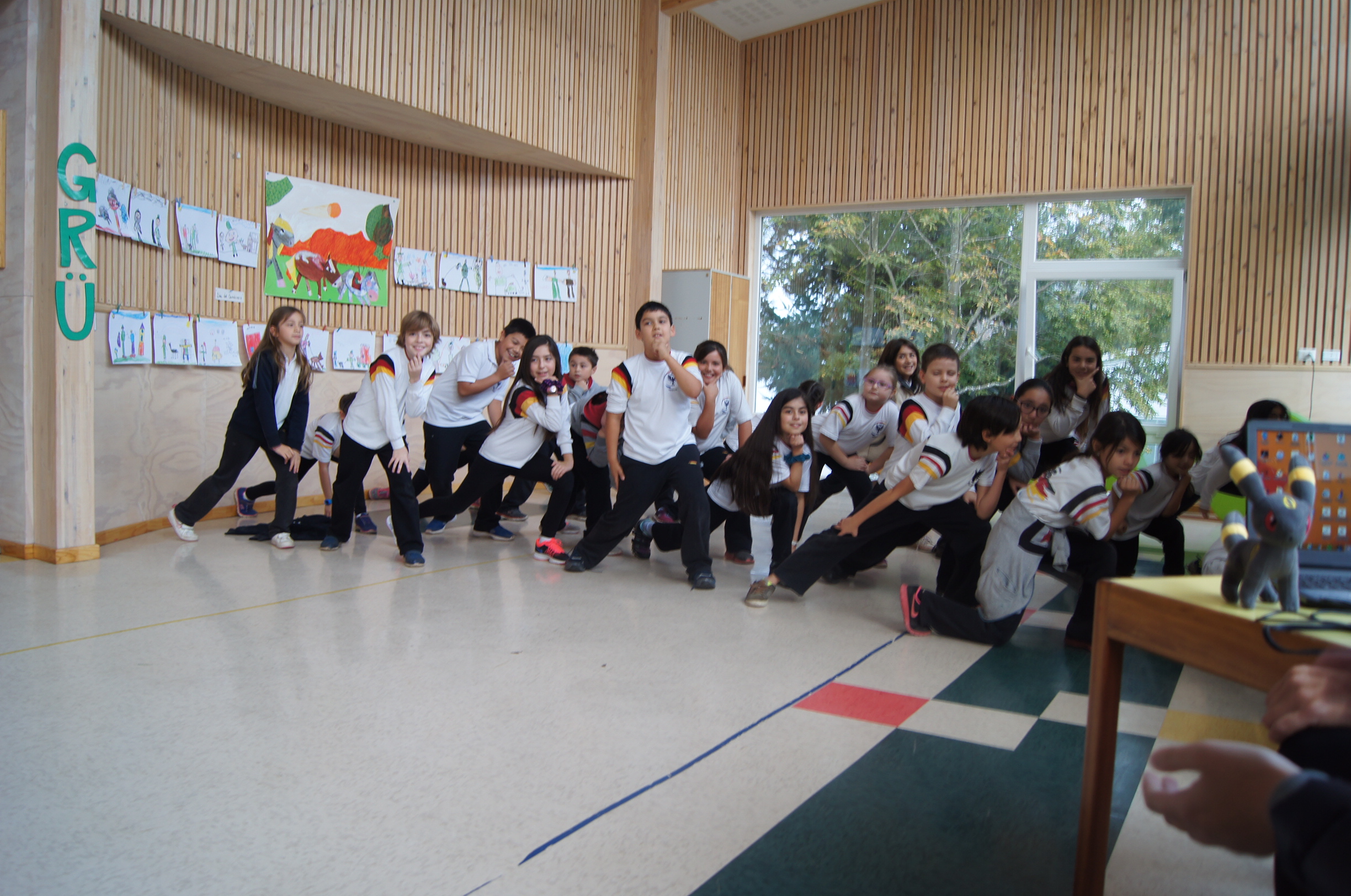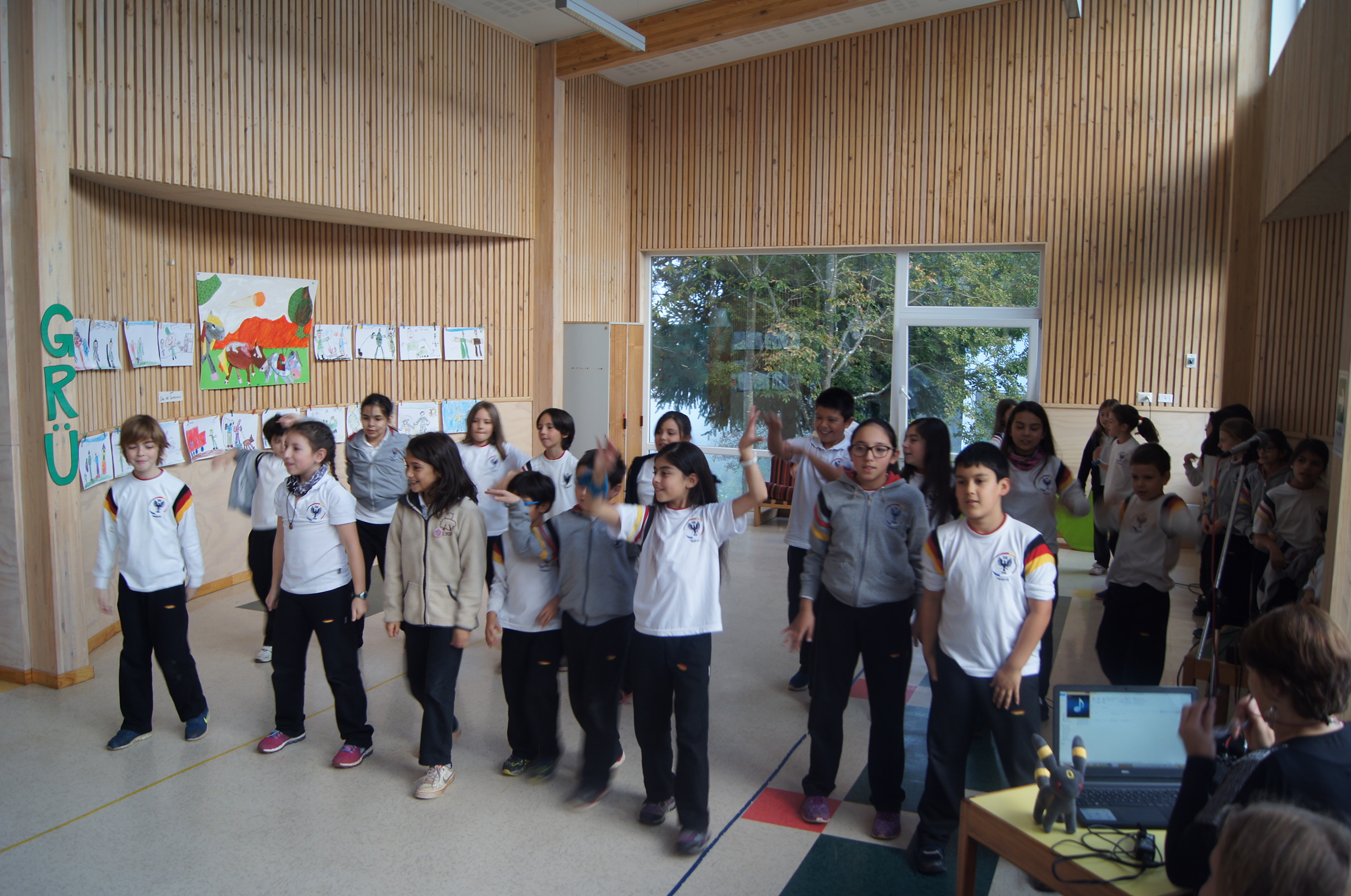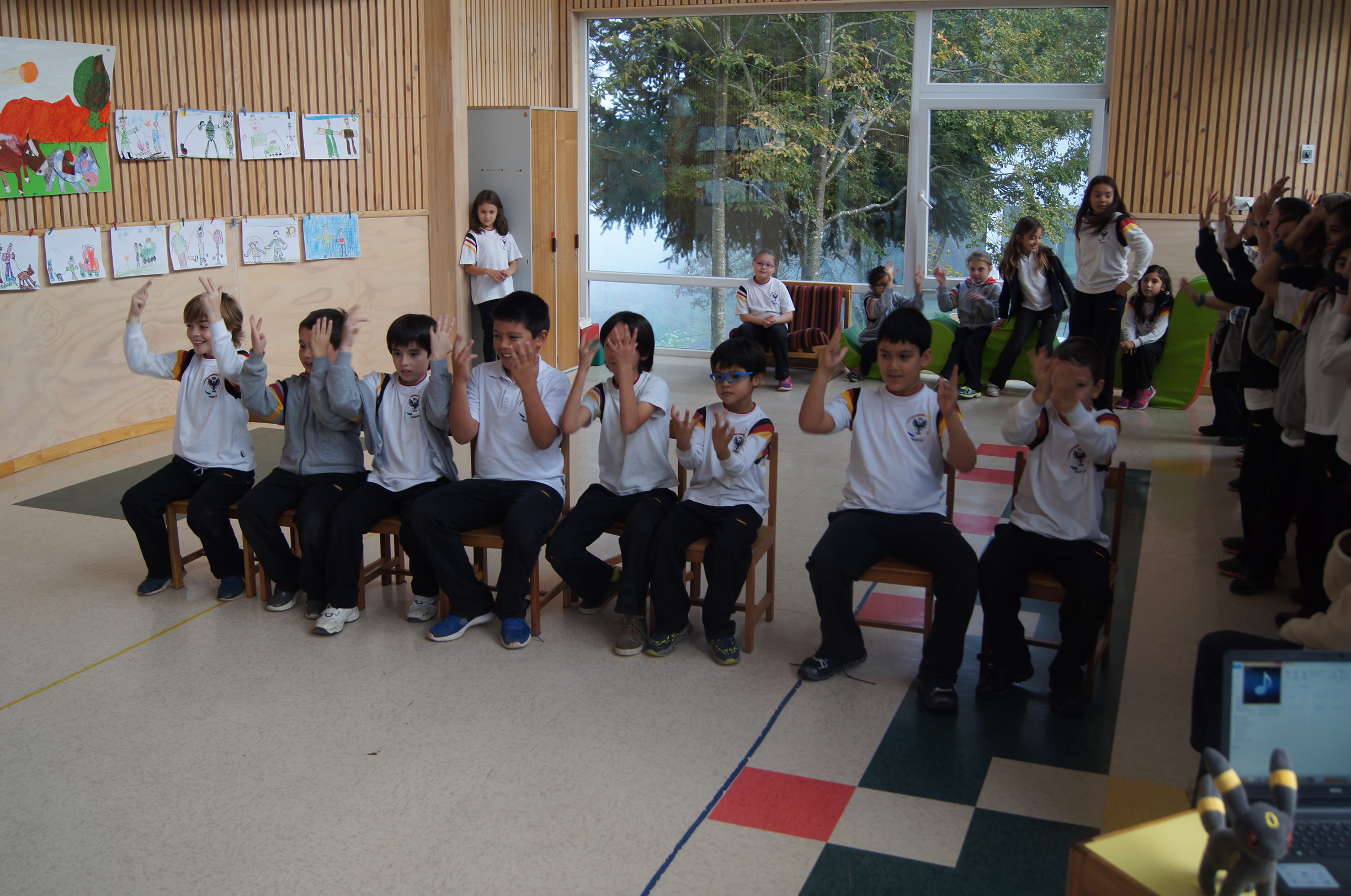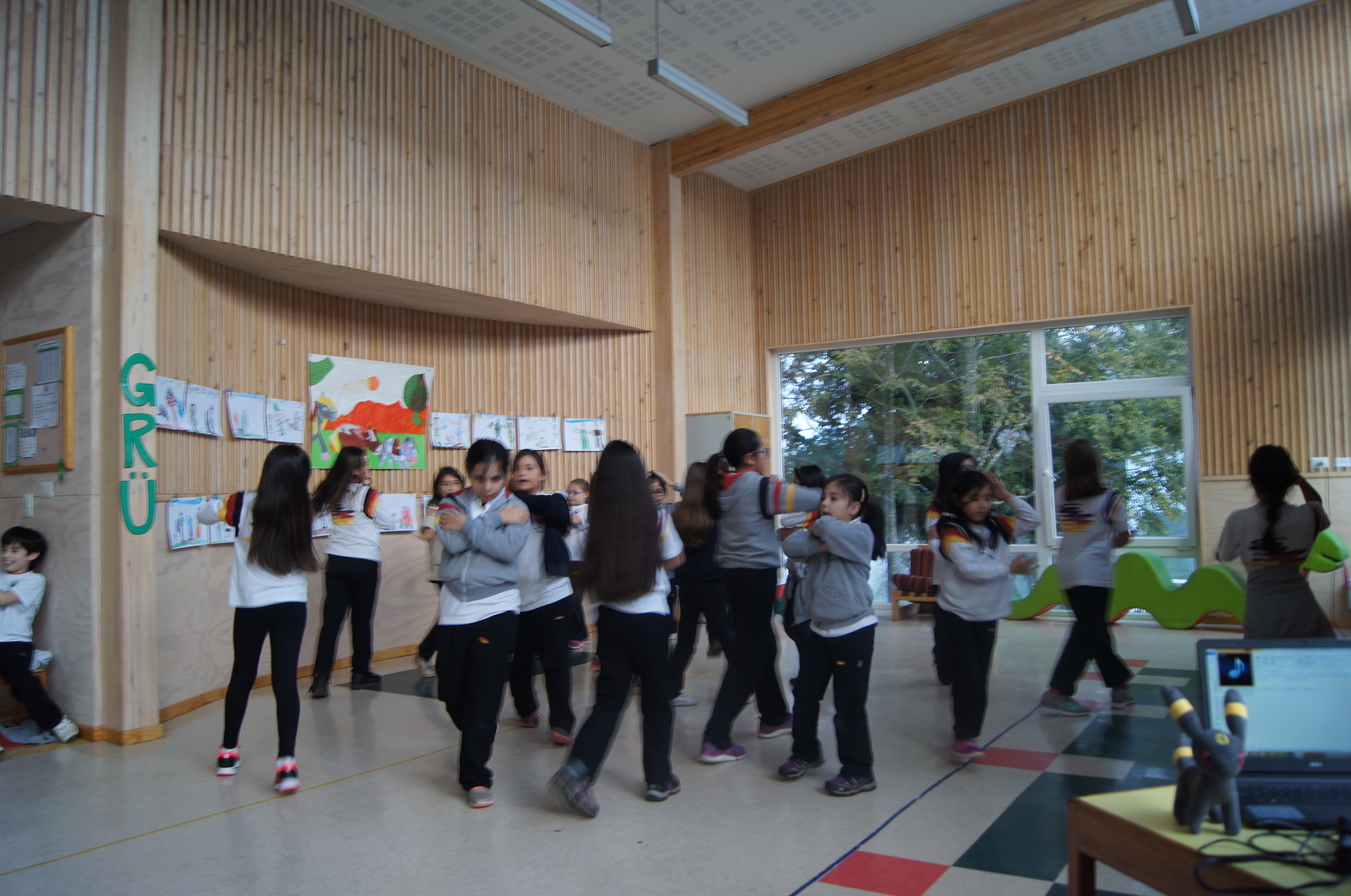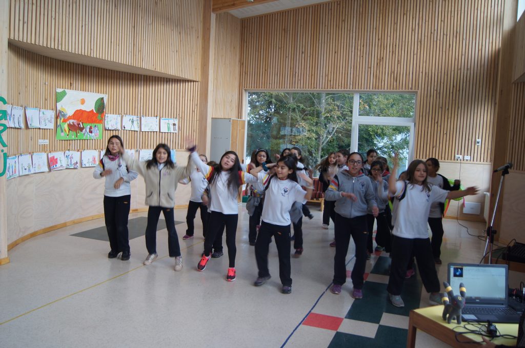 Una presentación de doce minutos realizó esta mañana para el Kindergarten el grupo “Bailemos todos”, extraprogramática dirigida por la profesora Renate Hagedorn, que reúne a alumnos de 1º a 5º básico en torno al baile.