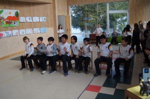 Los niños de Kindergarten vieron muy entusiasmados la presentación y aplaudieron a sus compañeros bailarines con entusiasmo.