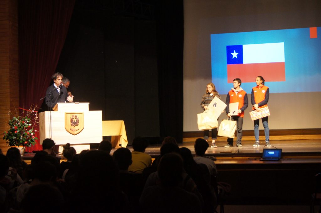 A continuación, el Rector Marc-Thomas Bock dedicó a los tres unas breves palabras de felicitación y les hizo entrega de un estímulo, acompañado del gran y espontáneo aplauso de los alumnos de Educación Media, presentes en el acto. Indicó que es un orgullo para nuestro Instituto que deportistas tan dedicados, perseverantes y apasionados formen parte de nuestra Comunidad Educativa.