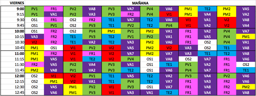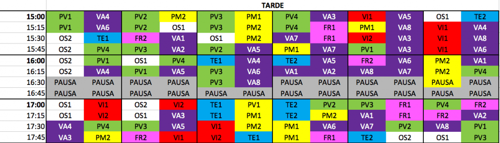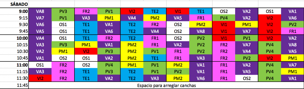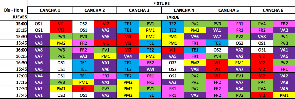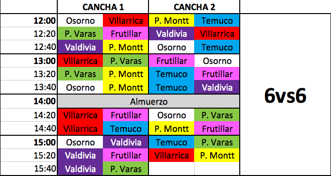 A las 15:00 hrs. está programado el inicio de los partidos que se jugarán hasta las 18:00 hrs. Se jugará 4 vs 4, las damas jugarán en seis canchas, y los varones jugarán en 2 canchas.