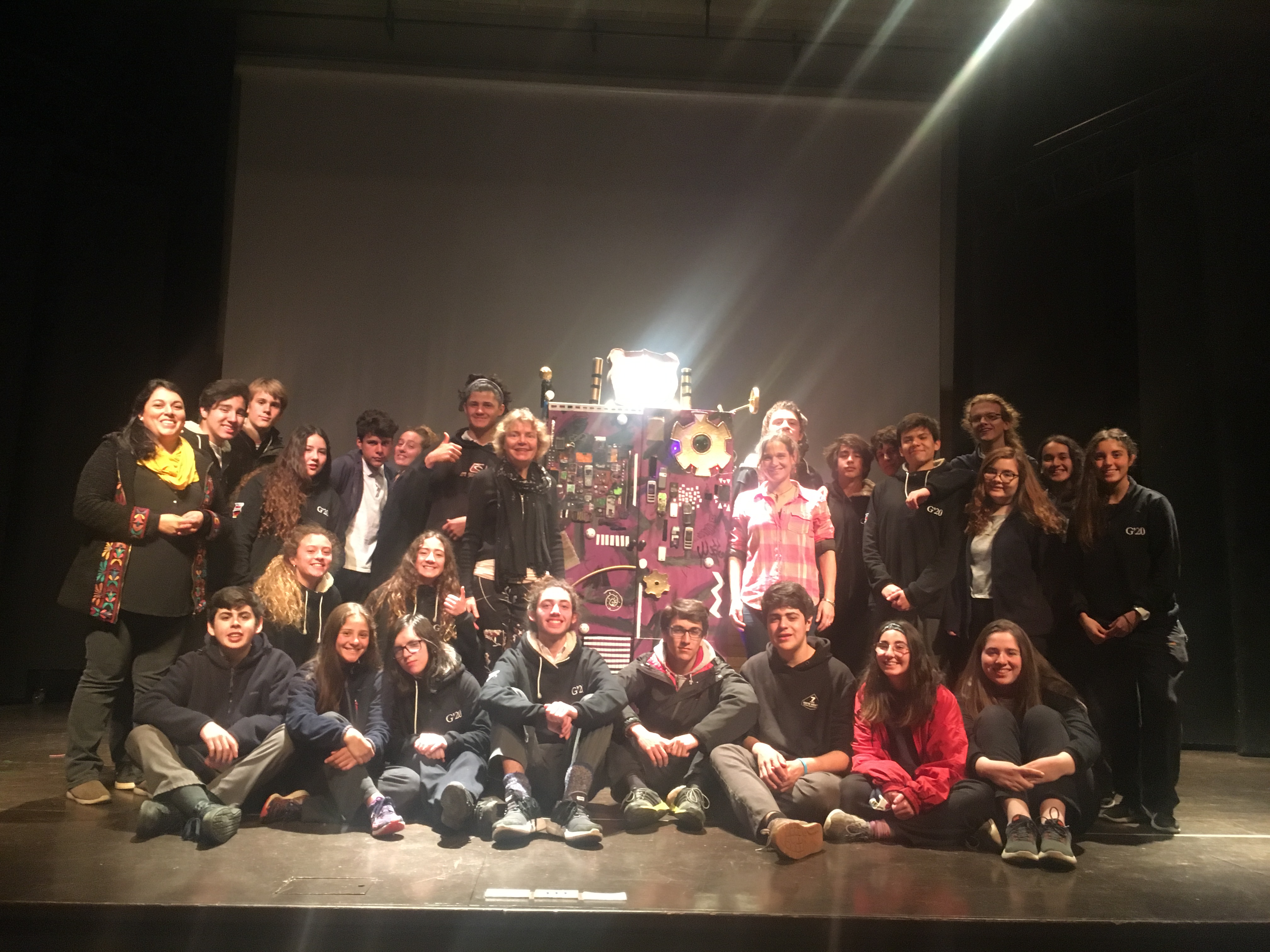 En clases de Educación Tecnológica, los alumnos de II medio construyeron la máquina del tiempo que se utiliza en la obra “Visión histórica 160 años”, con la que cerramos el programa de actividades por este aniversario. Ayer los alumnos hicieron la entrega oficial de la máquina a la Rectora, y le contaron cómo trabajaron en ella a partir de marzo.
