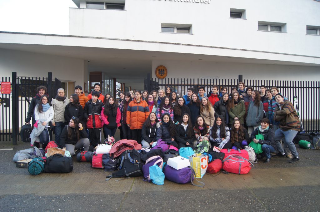 Junto a los profesores Jorge Araya, Alejandra Solsona y Norbert Ruthenberg, los alumnos de II medio partieron poco después de las 08:30 hrs., en dos buses, con destino al refugio del Colegio Alemán de Temuco, en las faldas del Volcán Llaima.