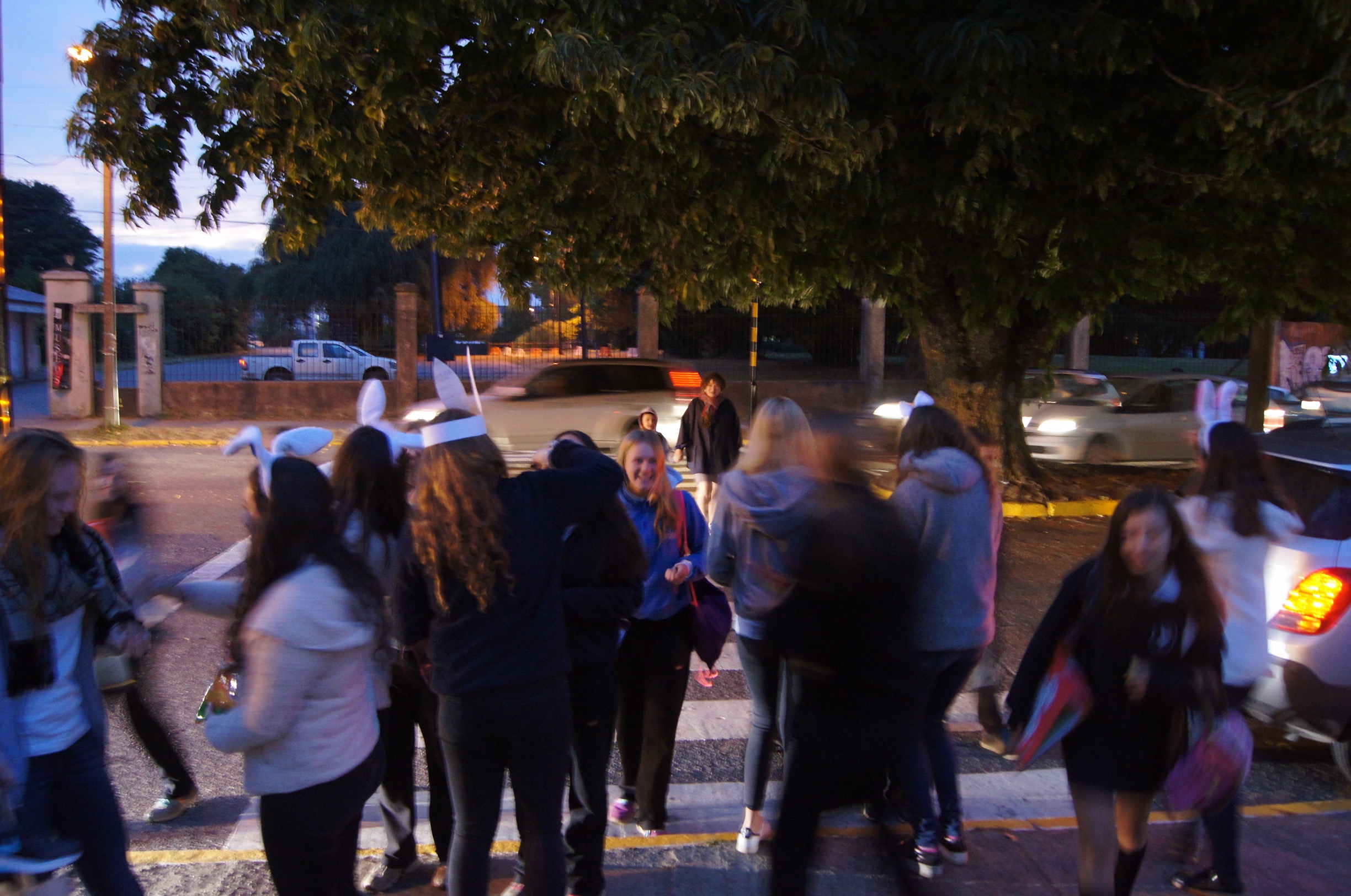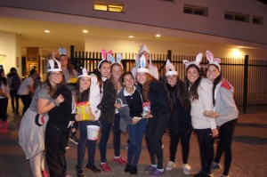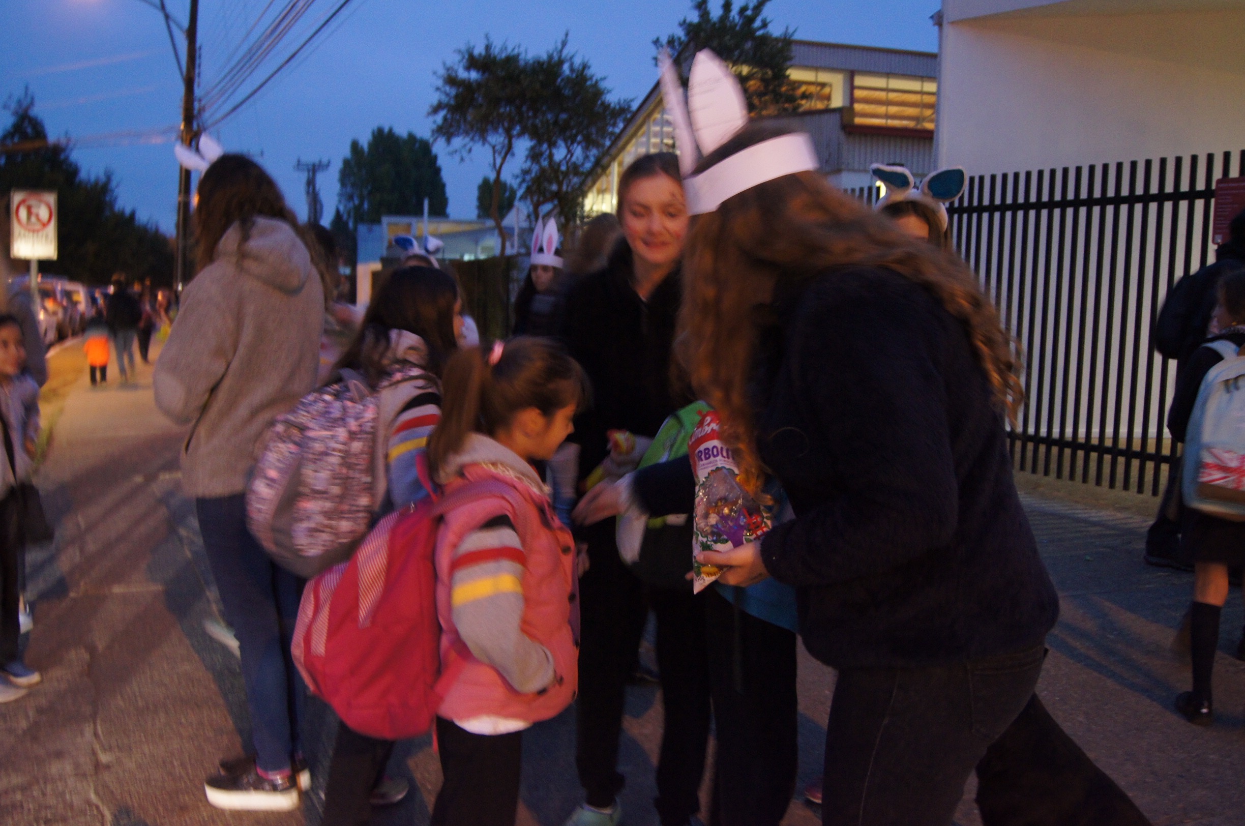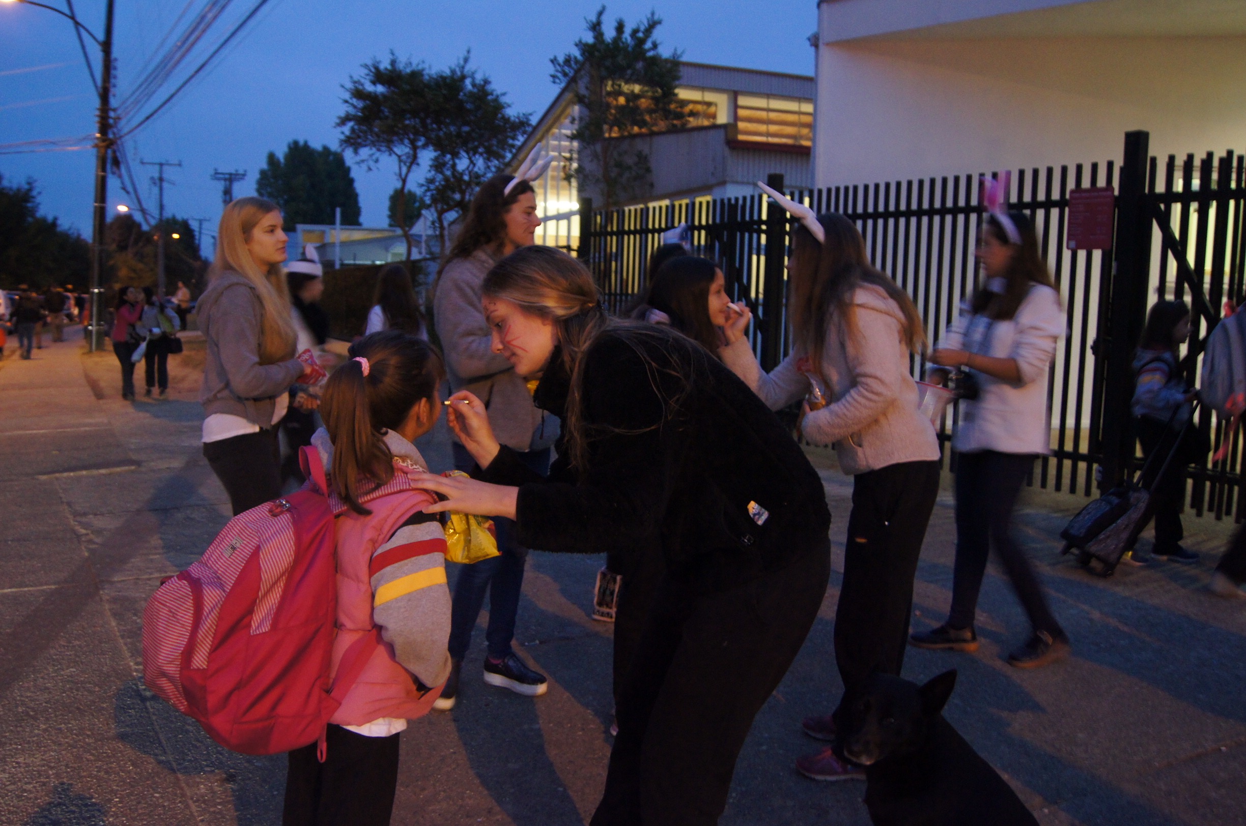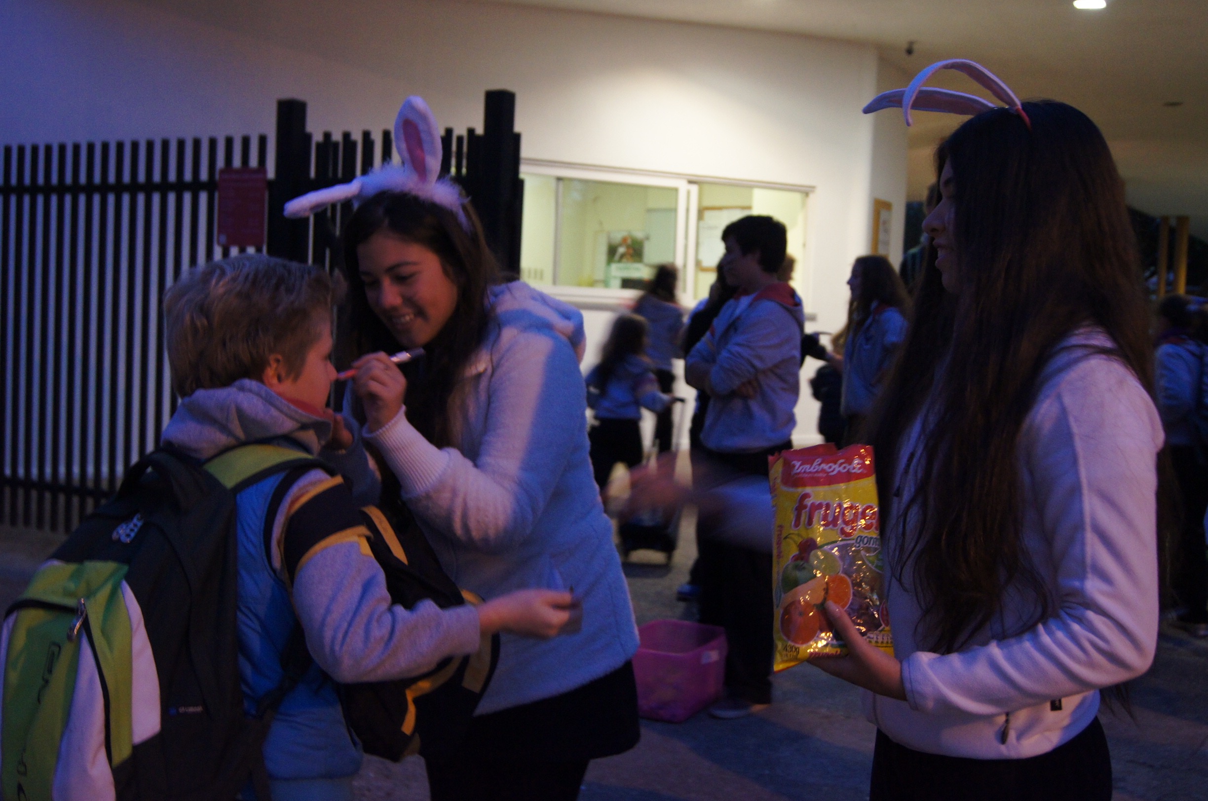 Antes de las 07:30 hrs. de esta mañana ya estaban los alumnos de los IV medios en la entrada principal del colegio, para saludar al resto de sus compañeros por Pascua de Resurrección y la venida del Osterhase. Con huevitos de chocolate y dulces dieron la bienvenida a alumnos y funcionarios, los que recibieron gratamente el saludo. Además de contar con música adecuada para la ocasión, muchos de ellos pintaron caras de conejo en sus compañeros y en algunos profesores y funcionarios que no se salvaron de la iniciativa.