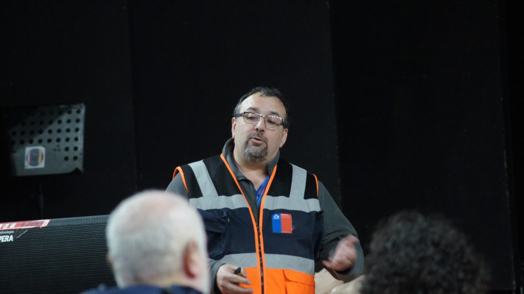 Luego de una breve introducción de parte de Daniel Epprecht, Ricardo Almonacid dio una charla acerca de la prevención y los tipos de riegos y desastres que puede enfrentar la población en Chile y en nuestra región, con un llamado a la detección de posibles riesgos y a la permanente revisión y consecuente adecuación de los protocolos y procedimientos asociados a la seguridad, cada vez que se detecten escenarios modificados.
