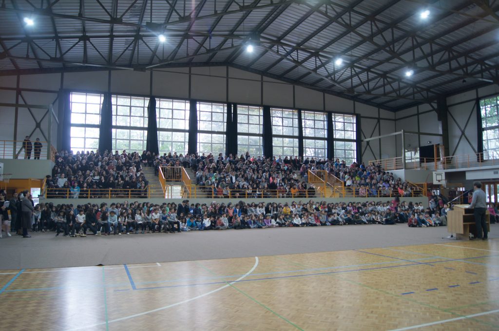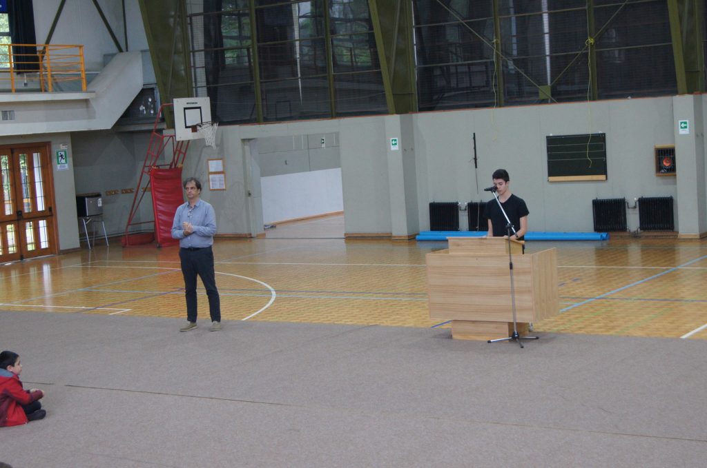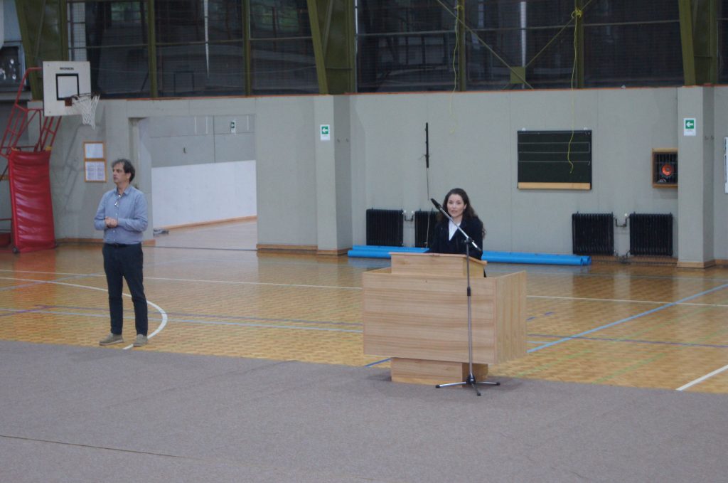 Las actividades finalizaron en el gimnasio 2, con todo el colegio congregado, para escuchar el mensaje del Rector Marc-Thomas Bock, del Presidente del Centro de Alumnos, Lucas González, alumno de IV C; y de la Vicepresidente de la directiva del Centro General de Padres y Apoderados, Paula Álvarez.