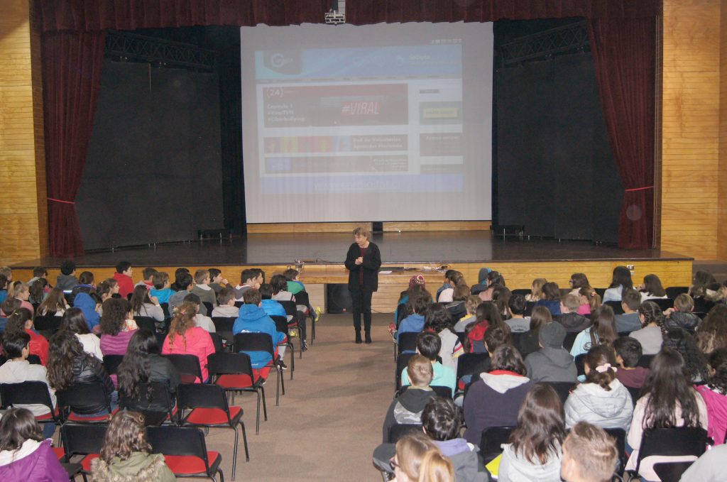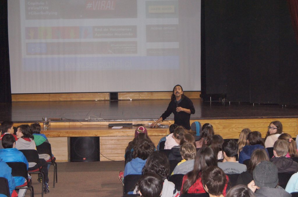 Entre lunes y martes, el psicólogo trabajó en grupo con directivos del colegio, padres y apoderados, representantes de los alumnos y el profesorado. El lunes por la tarde realizó una charla para padres y apoderados, la que tuvo una gran asistencia, y además ayer dio dos entretenidas charlas a los alumnos de 5º a 7º y de 8º a II medio, en las cuales desarrolló con ellos los puntos más relevantes de las redes sociales, en cuanto a efectos sobre los demás, el entorno y la responsabilidad del uso de ellas, tanto dentro, como fuera del colegio.
