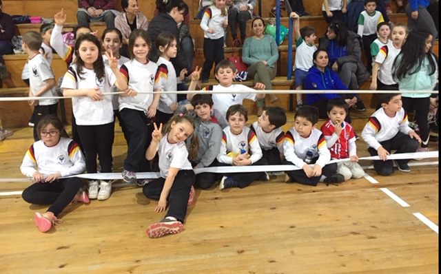 De nuestro Instituto participaron 10 damas y 10 varones del 1.1, 1.2 y 1.3, en un evento deportivo que no tiene carácter ni competitivo, ni de rendimiento, “ya que los niños se mezclan por colegio para desarrollar los juegos, los cuales fortalecen el espíritu de cooperación entre los distintos establecimientos participantes, y ponen a prueba las habilidades motrices básicas de cada uno de los alumnos”, señalo el profesor Carlos Morilla, a cargo del Atletismo inicial en nuestro Instituto, y con quien los niños asistieron al encuentro.