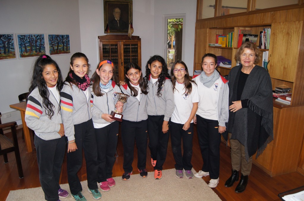 Sehr zufrieden mit ihren Leistungen erschienen die Schülerinnen, die beim Leichtathletikschulwettbewerb SOPROLE „Pradelia Delgado“ in der Kategorie „Preparatoria“ den ersten Platz erzielt hatten, im Büro der Schulleiterin Liske Salden. An dem Wettbewerb, der am Wochenende vom 8. bis zum 10. April stattfand, nahmen mehr als 900 Leichtathleten aus Bildungseinrichtungen von Linares bis Punta Arenas teil, um in den verschiedenen Kategorien anzutreten.
