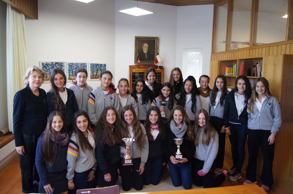 18.10.2016 Heute Morgen überreichte unsere Damen-Leichtathletikdelegation der Schulleiterin Liske Salden ihre Pokale, die sie bei der SOPROLE Schulleichtathletikmeisterschaft in Temuco gewonnen hatten.