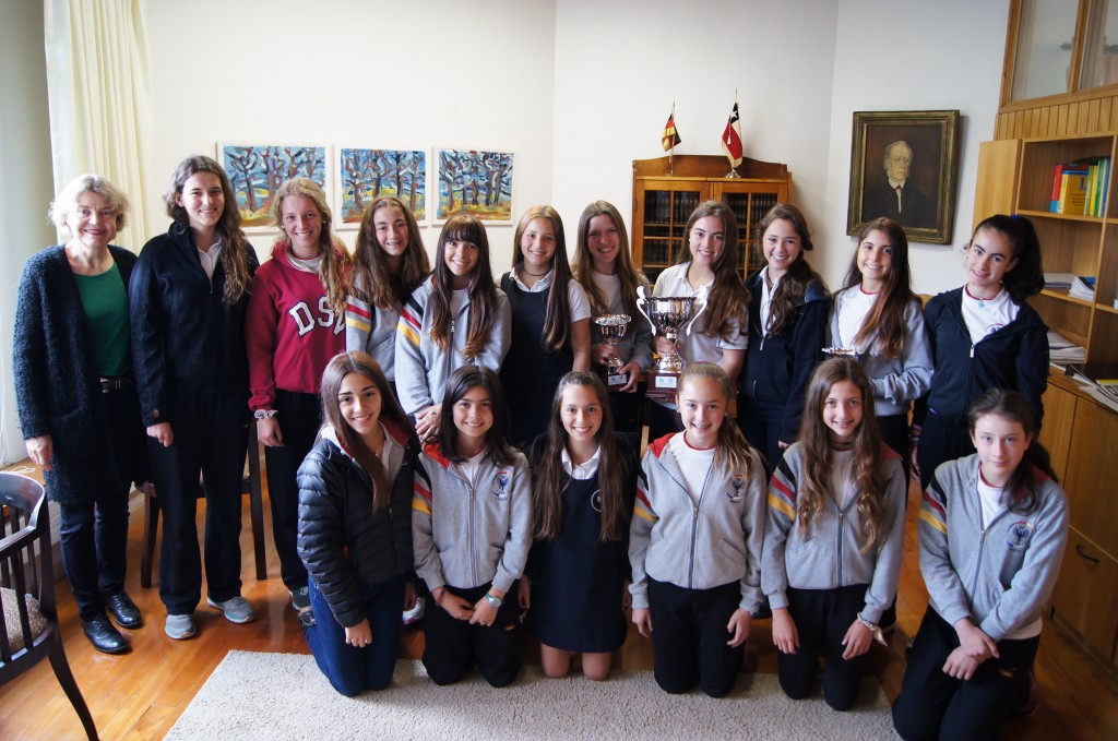 26.11.2015 Unsere Leichtathletikdamen, die beim letzten Leichathletikschulwettbewerb SOPROLE, der im Oktober in Temuco stattgefunden hatte, völlig verdient den zweiten Gesamtplatz erzielt hatten, wurden von unserer Schulleiterin empfangen.
