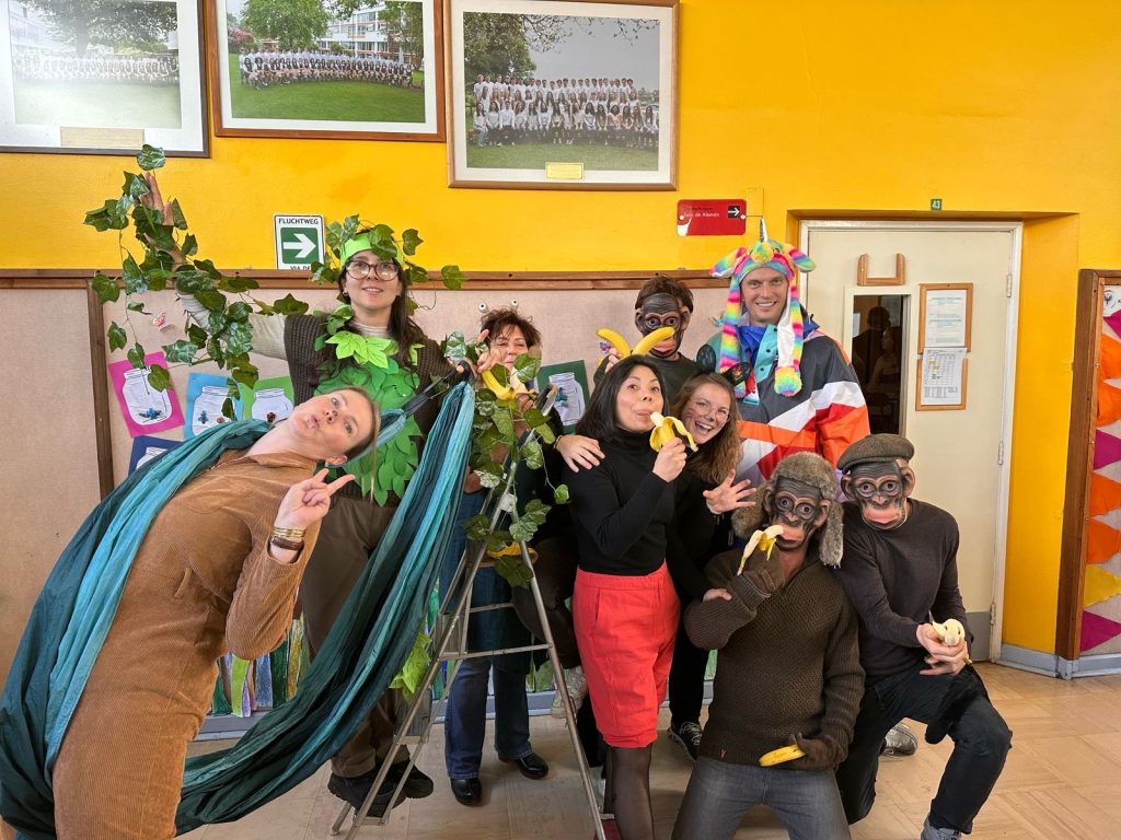 Zur Leseförderung in der gesamten Schulgemeinschaft wurde außerdem der Wettbewerb „Buch-Charakterisierung“ durchgeführt. Die Fachschaften waren eingeladen, sich als literarische Figuren oder Werke zu verkleiden und ein gemeinsames Foto einzureichen. Der Anreiz: ein kulinarischer Preis für das kreativste Team.