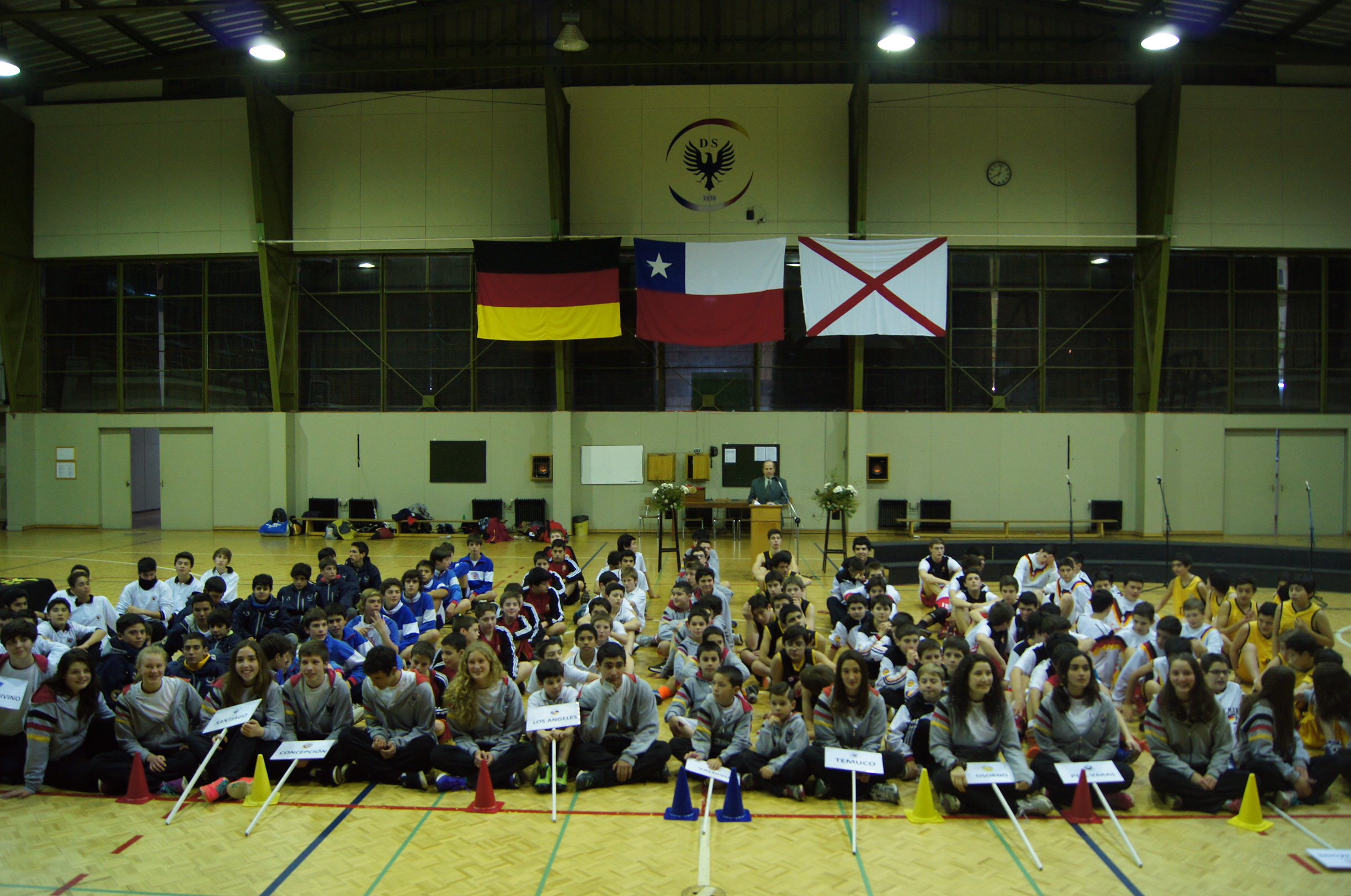 28.08.2015 Im feierlichen Rahmen wurden die 125 Schüler aus Deutschen Schulen Chiles, die bei dem sportlichen Ereignis teilnehmen, willkommen geheißen.