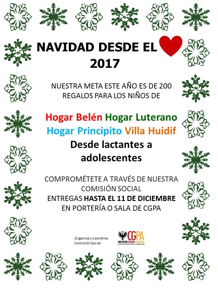 15.11.2017 Nuestro Centro General de Padres y Apoderados, a través de su Comisión Social, invita a participar de esta campaña a toda nuestra Comunidad Educativa.