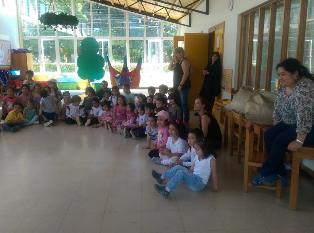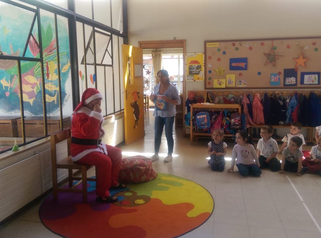 Nikolaus llegó a Kindergarten repartiendo naranjas y frutos secos. Contó su historia a los niños en el hall principal de las dependencias del Preescolar, donde además los alumnos le cantaron “Im Dezember kommt der Nikolaus” (En diciembre viene Nikolaus).