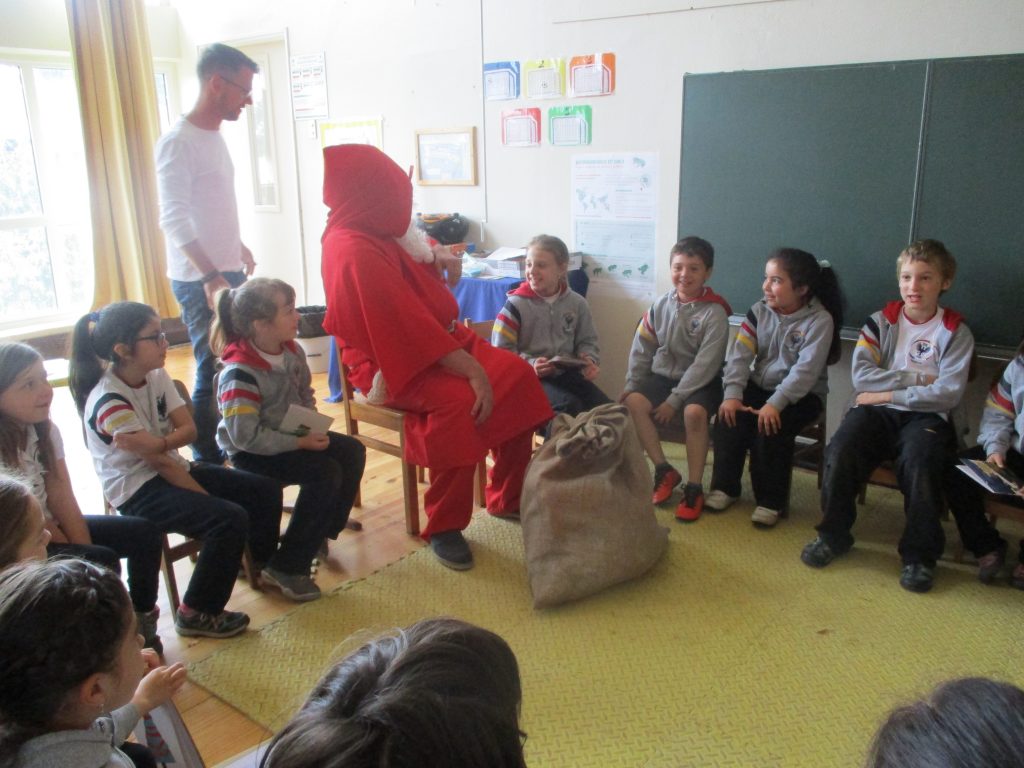 Entre la primera y la quinta hora de clases, Nikolaus efectivamente se hizo presente en las salas, para compartir con los niños su sabiduría y premiar con elogios a aquellos que, según su libro, fueron destacados por su buen rendimiento, comportamiento o interés por el alemán.