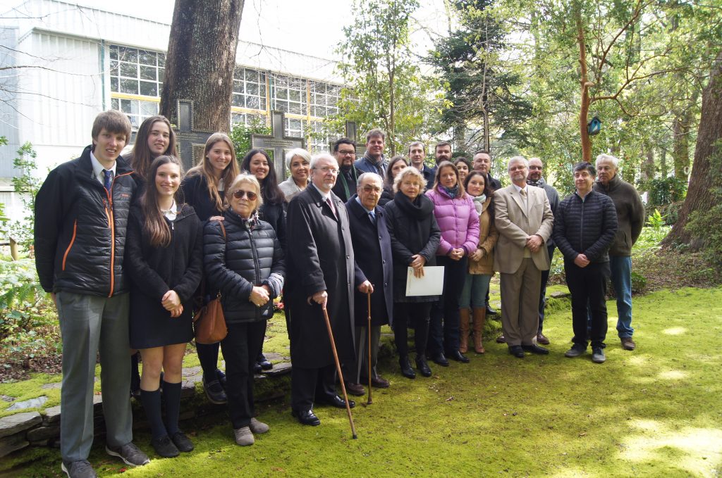 Eduardo Schild, Cónsul Honorario de Alemania, el presidente del Directorio Nicholas Röhm, la Rectora Liske Salden, Carlos Anwandter y María Inés Anwandter, encabezaron la ceremonia de colocación de la ofrenda floral, que cada 1º de octubre se realiza en el cementerio aledaño a nuestro Instituto. También participaron de este homenaje integrantes del Directorio, de las Directivas del Centro General de Padres y Apoderados, encabezados por su presidente Pedro Guerra, y de la Directiva del Centro de Alumnos, representada por su presidente Petra Bachmann y su tesorero Vincent Röhm, además de profesores y funcionarios del Instituto.
