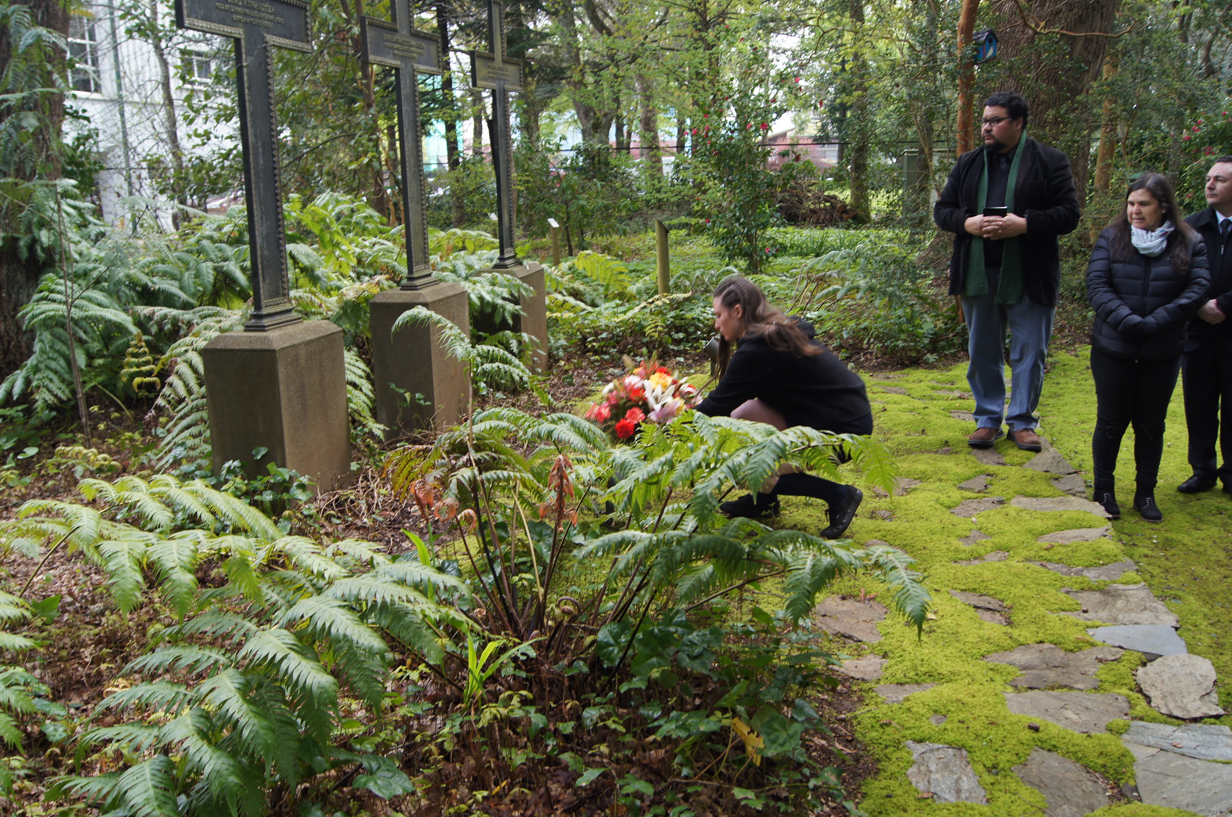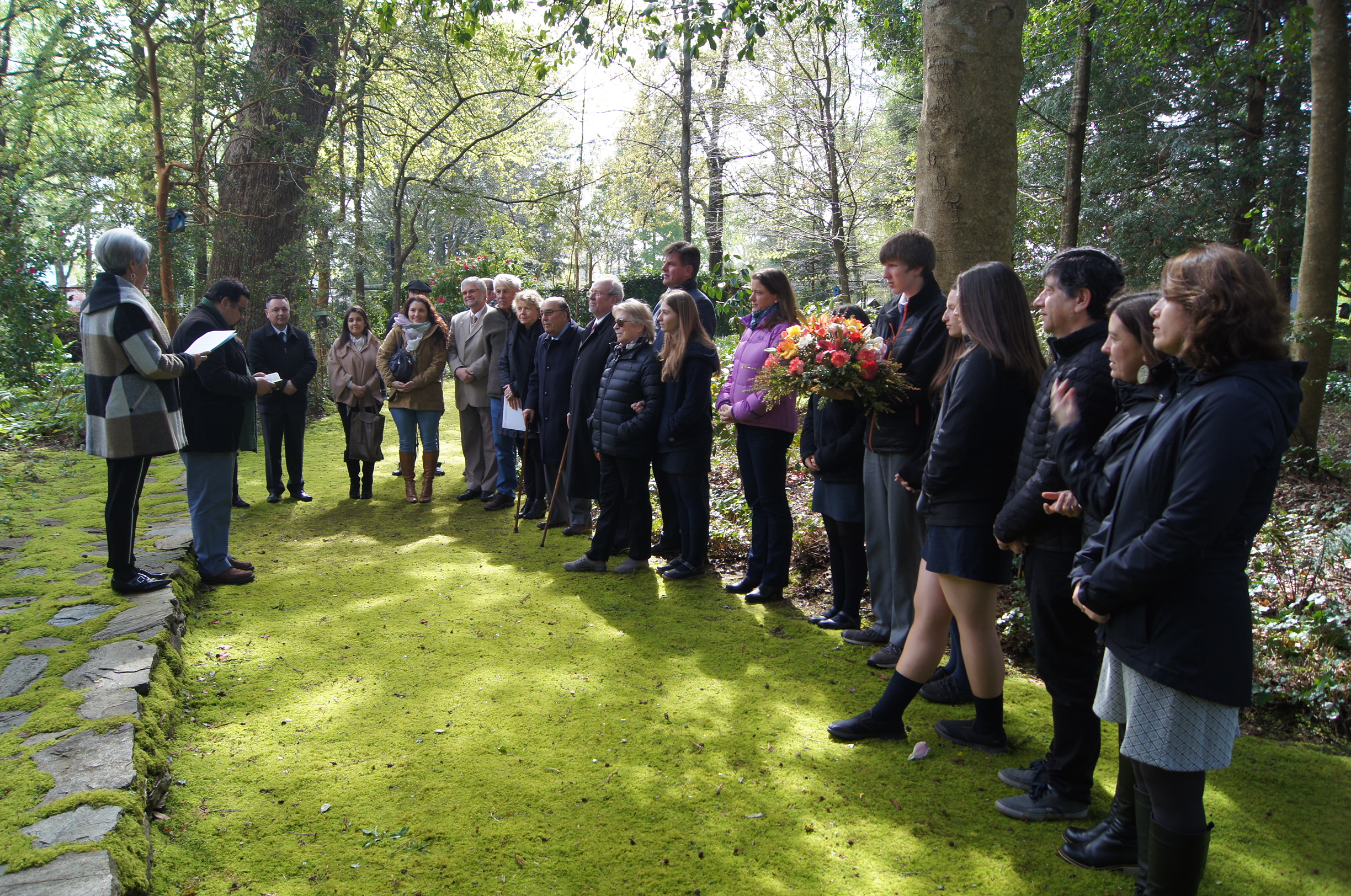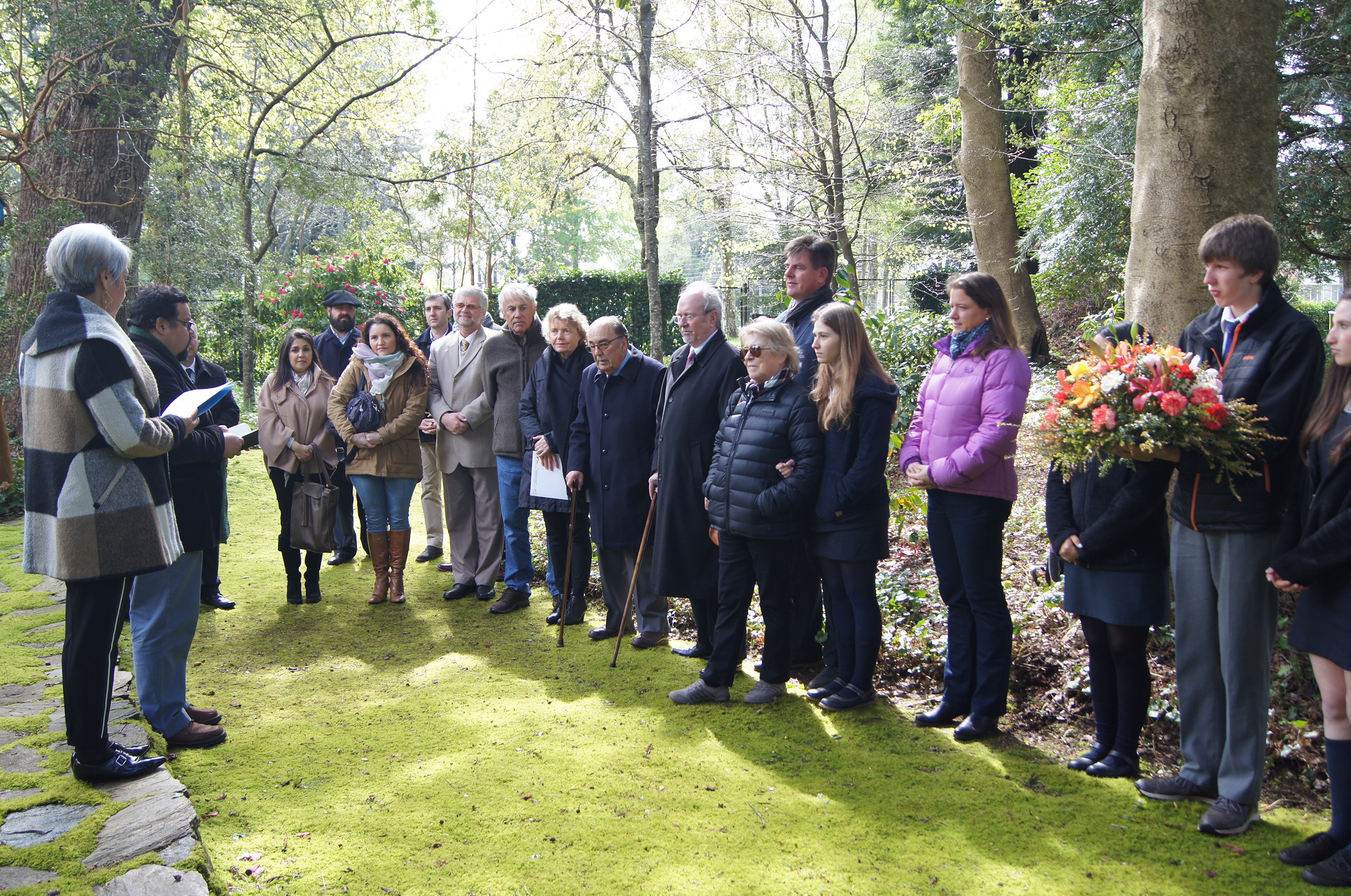 Eduardo Schild, Cónsul Honorario de Alemania, el presidente del Directorio Nicholas Röhm, la Rectora Liske Salden, Carlos Anwandter y María Inés Anwandter, encabezaron la ceremonia de colocación de la ofrenda floral, que cada 1º de octubre se realiza en el cementerio aledaño a nuestro Instituto. También participaron de este homenaje integrantes del Directorio, de las Directivas del Centro General de Padres y Apoderados, encabezados por su presidente Pedro Guerra, y de la Directiva del Centro de Alumnos, representada por su presidente Petra Bachmann y su tesorero Vincent Röhm, además de profesores y funcionarios del Instituto.