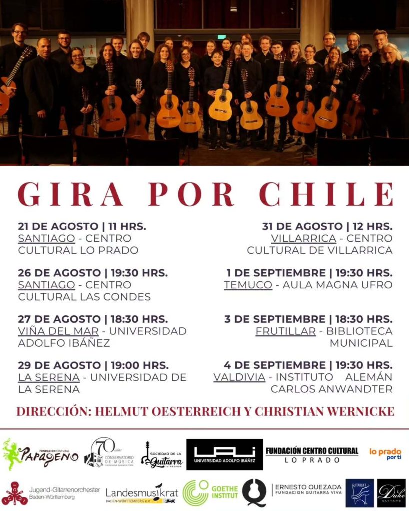 El Instituto invita a estudiantes, familias y público general al concierto que la Orquesta de Guitarras de Baden-Württemberg realizará el jueves 04 de septiembre, a las 19:30 horas, en el Auditorium. La entrada es gratuita.