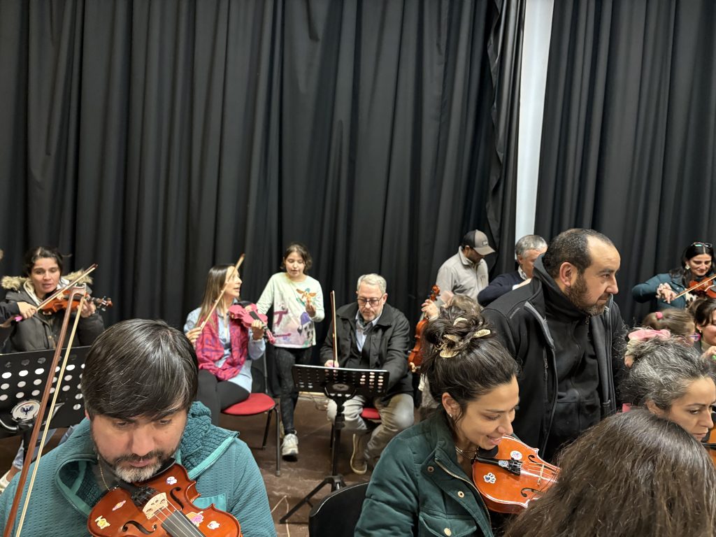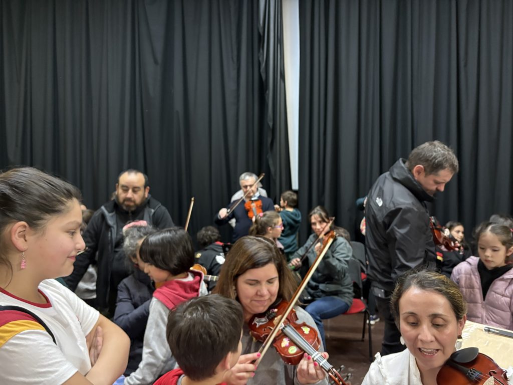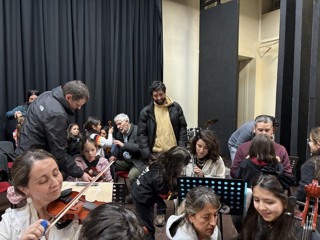 La actividad contó con el apoyo de los profesores de instrumentos Jorge Valdebenito, Paula Poveda, Manuela Rocha, Dayana Olmos y Soledad Guzmán, quienes acompañaron el trabajo de las familias durante la práctica.