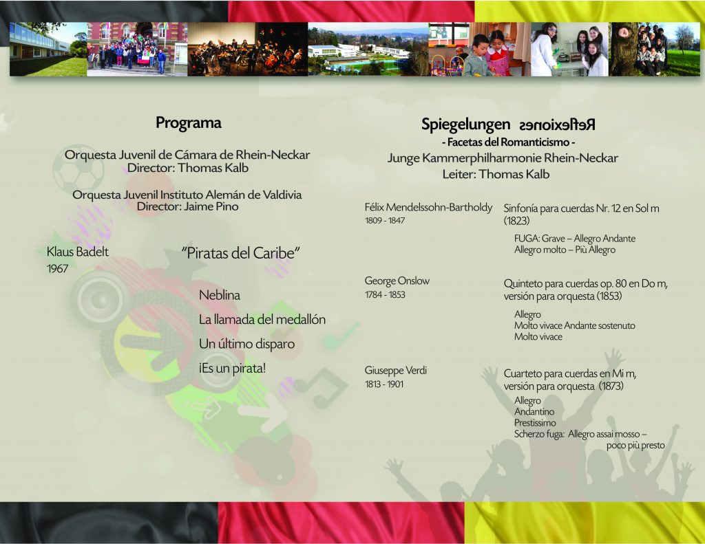 Este año serán nuestros alumnos integrantes de la Orquesta Juvenil quienes tengan la oportunidad de compartir una hermosa experiencia al tocar parte del concierto con la Orquesta Juvenil de Cámara de Rhein-Neckar, cuya calidad pueden apreciar en el video que dejamos disponible en la portada de nuestra página web.