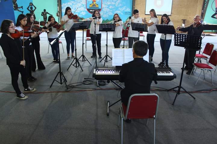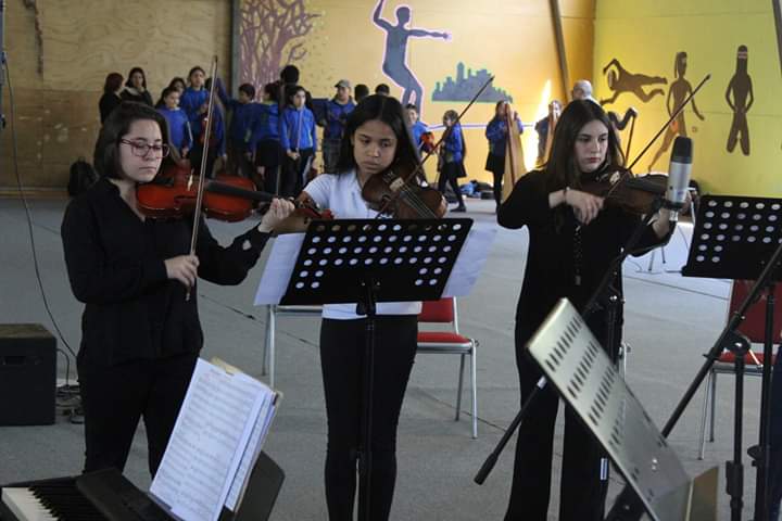 A la cita llegaron la Camerata Valdivia, del Conservatorio de Música de la Universidad Austral de Chile, el Taller de Violín de la Orquesta de Cámara de la Escuela Nueva España de Los Lagos; el Ensamble Latinoamericano del Colegio “Nuestra Señora del Carmen”, de Valdivia; la Orquesta de Cámara del Liceo “Armando Robles Rivera”, y la Orquesta Juvenil de nuestro Instituto.