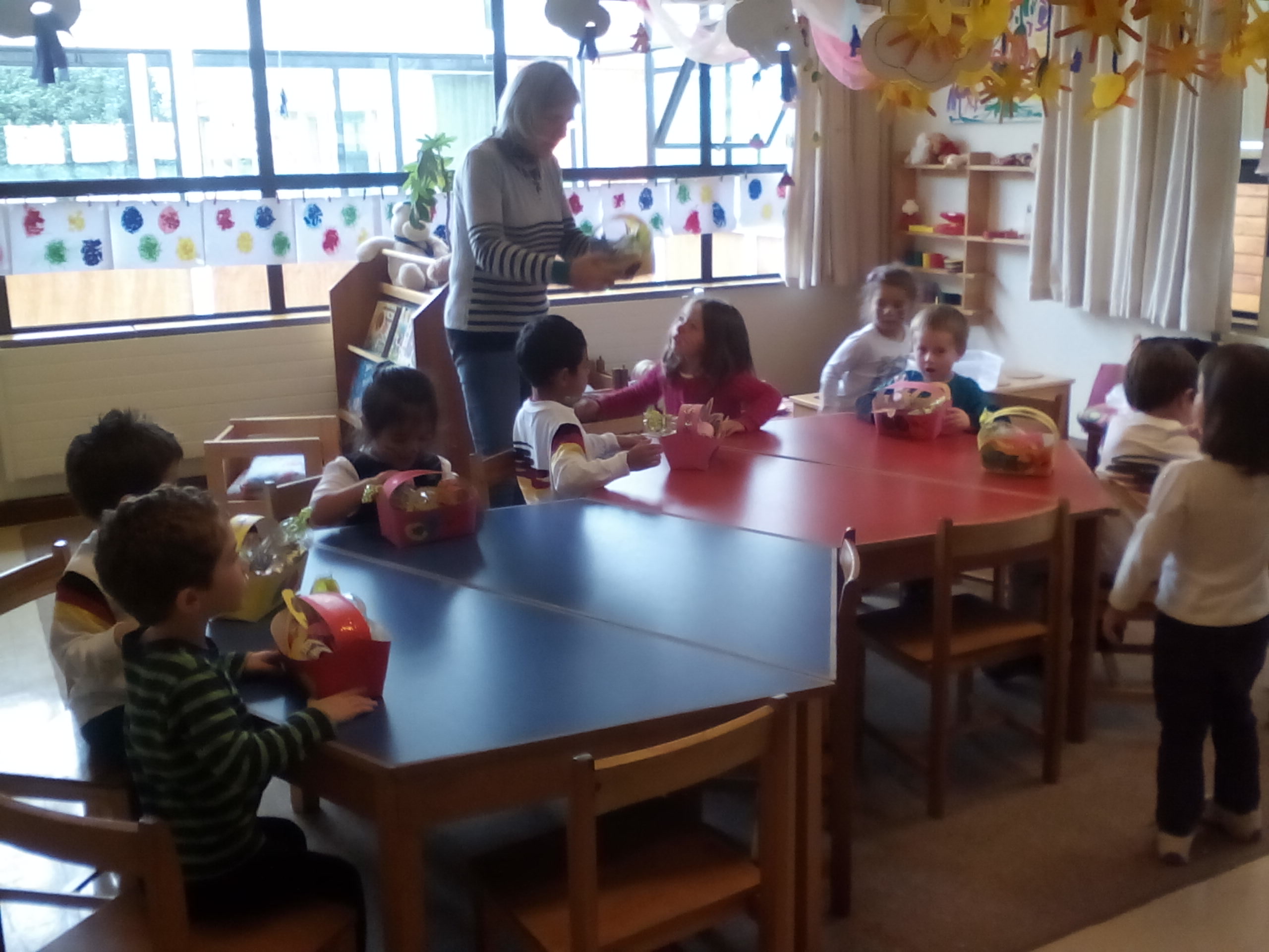 Mittags ging es ins Auditorium, wo die Kurzfilme “Das schönste Ei der Welt” und “Stups der kleine Osterhase“ gezeigt wurden. Im Anschluss suchten sie im Kindergartengebäude ihre Osternester.