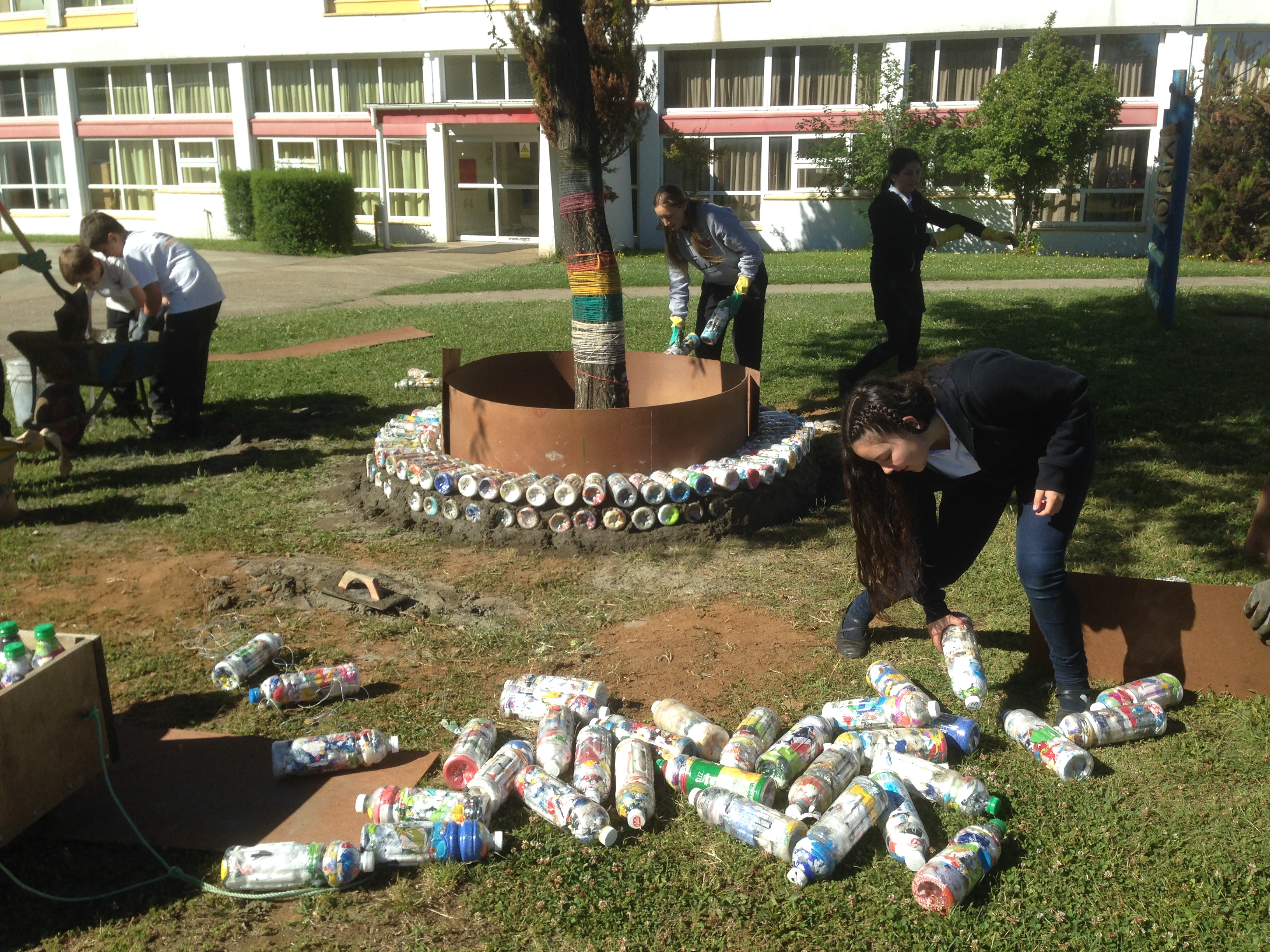 El cuidado del medioambiente también se hizo parte en el taller de ecoladrillos, dictado por el profesor Ulf Kaschl. Este proyecto se realizó para demostrar cómo pueden ser utilizados los ecoladrillos bien hechos que se han recolectado este año en el colegio, con la colaboración de alumnos y apoderados. El taller trabajó con unos 350 ecoladrillos bien hechos de los contenedores. Lamentablemente, una gran cantidad de los que había no eran aptos para utilizar en construcción. Con los ladrillos utilizables y cemento, los participantes del taller construyeron un banco circular en el patio de Educación Básica, el que podrán disfrutar nuestros alumnos el próximo año. El profesor Kaschl señaló que en 2017 pretenden seguir con la construcción con materiales reciclados, por lo que llamó a todos a cooperar, colocando atención en que los ladrillos estén bien hechos.