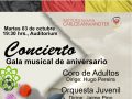 25.09.2017 Para el martes 03 de octubre, a las 19:30 hrs. en nuestro Auditorium, está programado el concierto de aniversario, preparado por los distintos conjuntos musicales de nuestro Instituto.