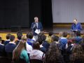 24.03.2014 Am Freitag hielt die Studienberaterin der Philipps Universität Marburg, Anke Heibrock, vor unseren Elft- und Zwölftklässlern einen informativen Vortrag im Auditorium. Begleitet wurde sie von der kolumbianischen Studentin Daniela