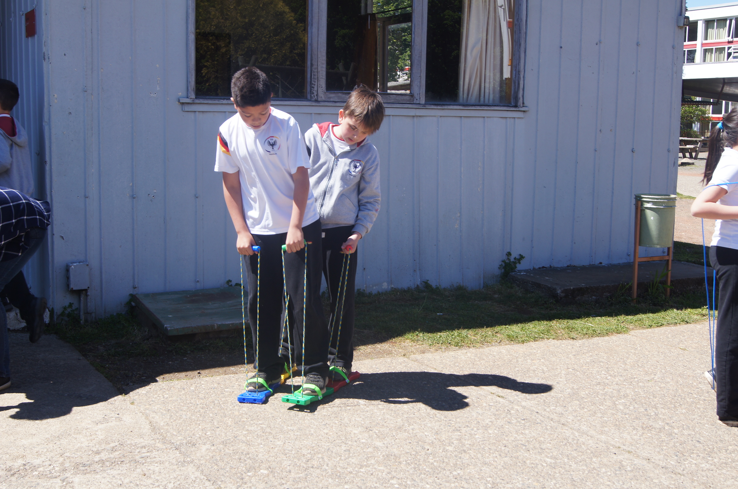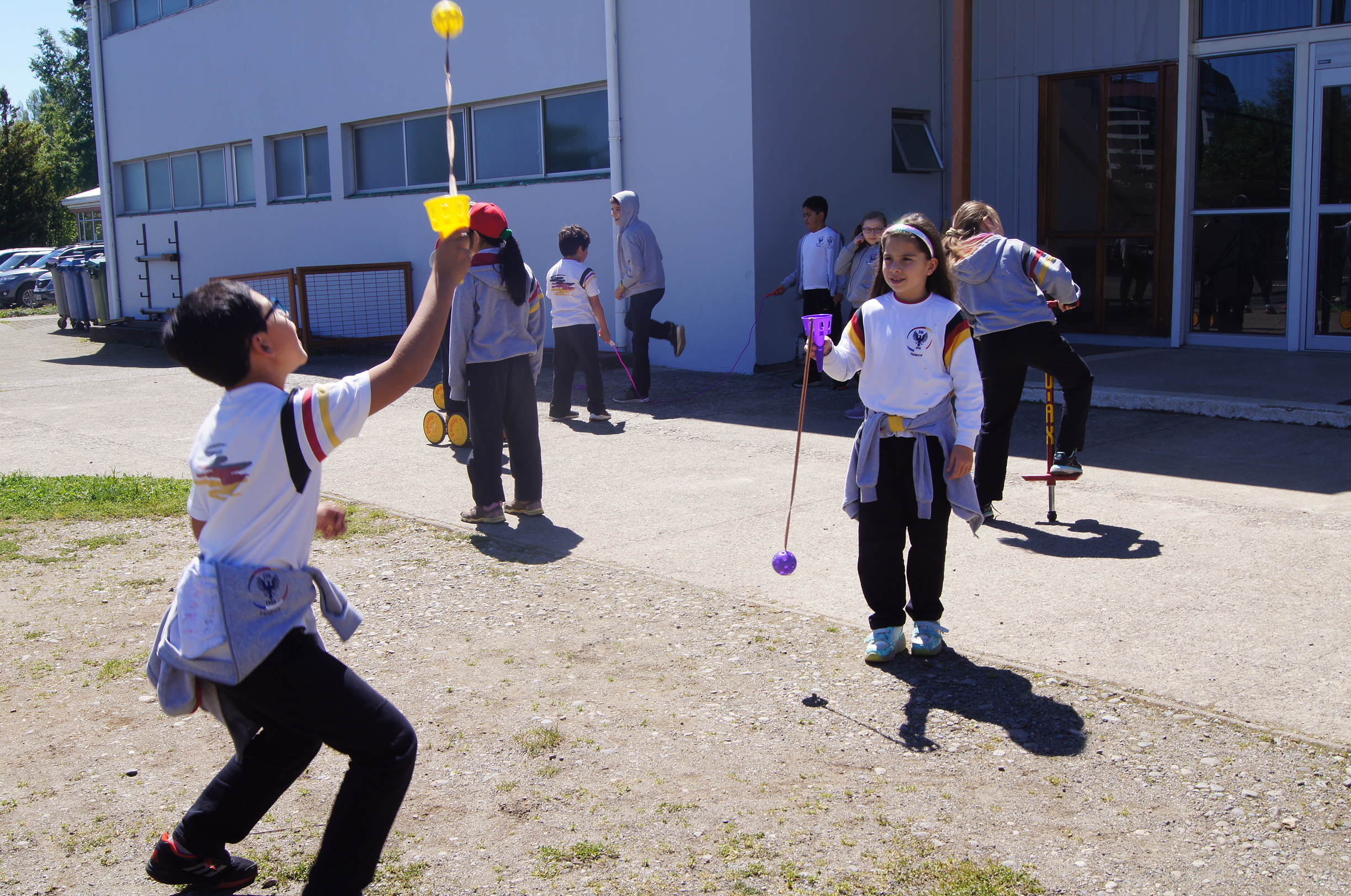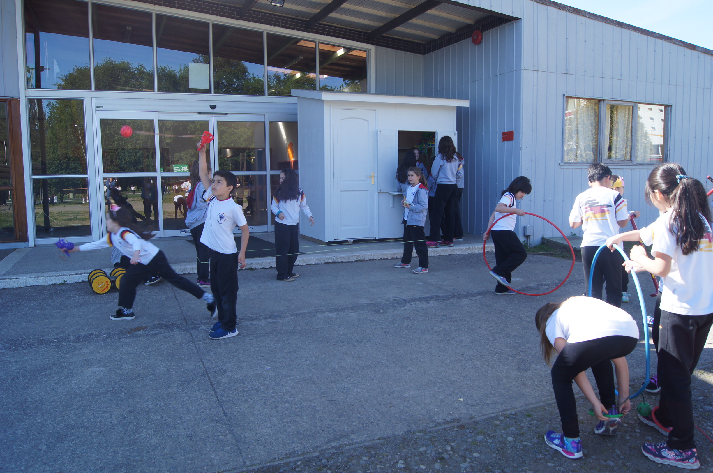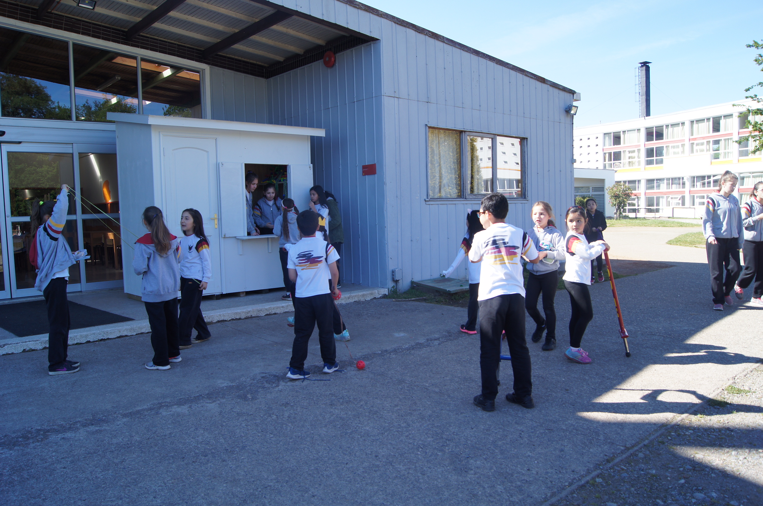 El martes 16 se dio inicio a las pausas activas, Aktive Pause, durante los recreos de la mañana, en los que nuestros estudiantes pueden usar los artículos que se guardan en una caseta especialmente construida para la administración y organización de la actividad.